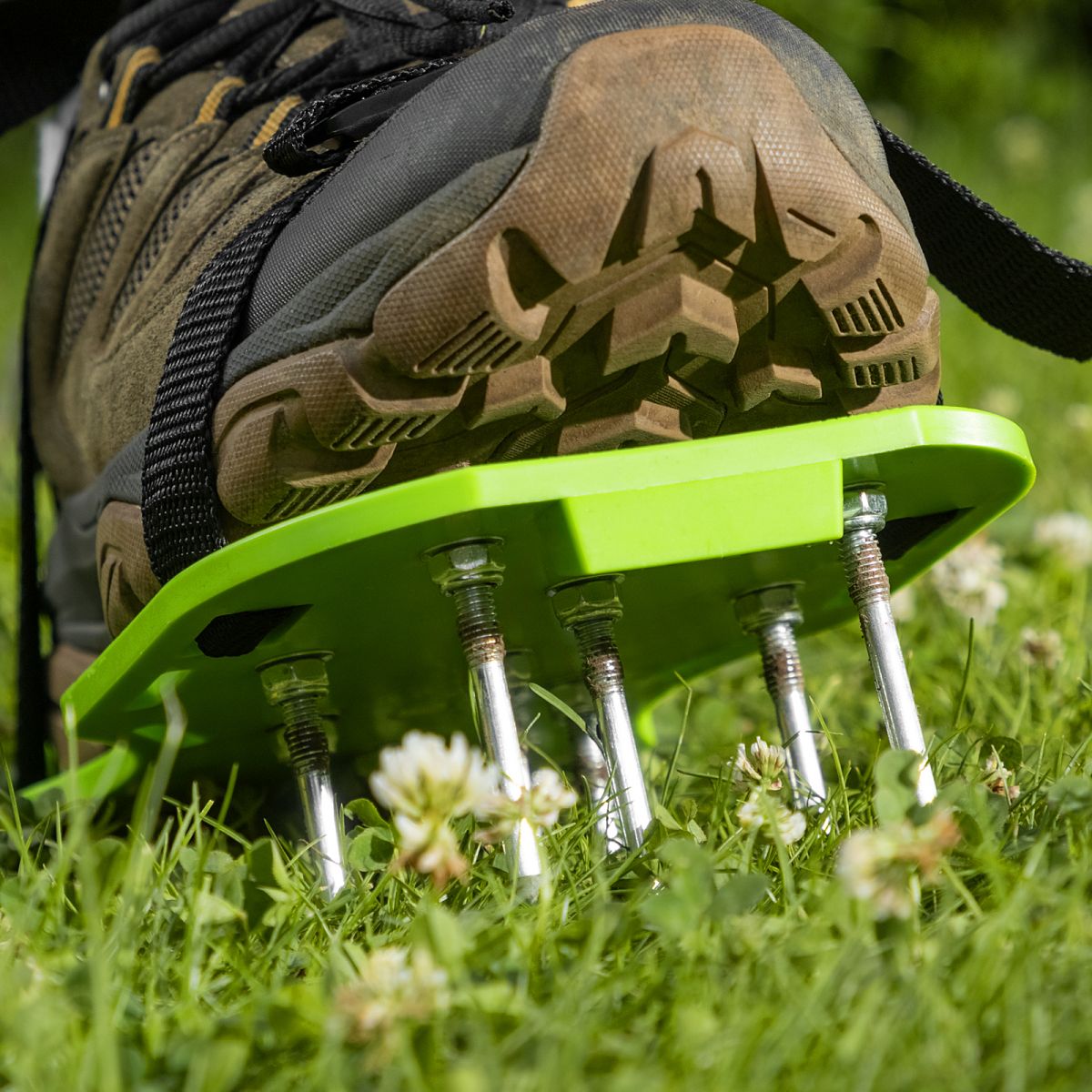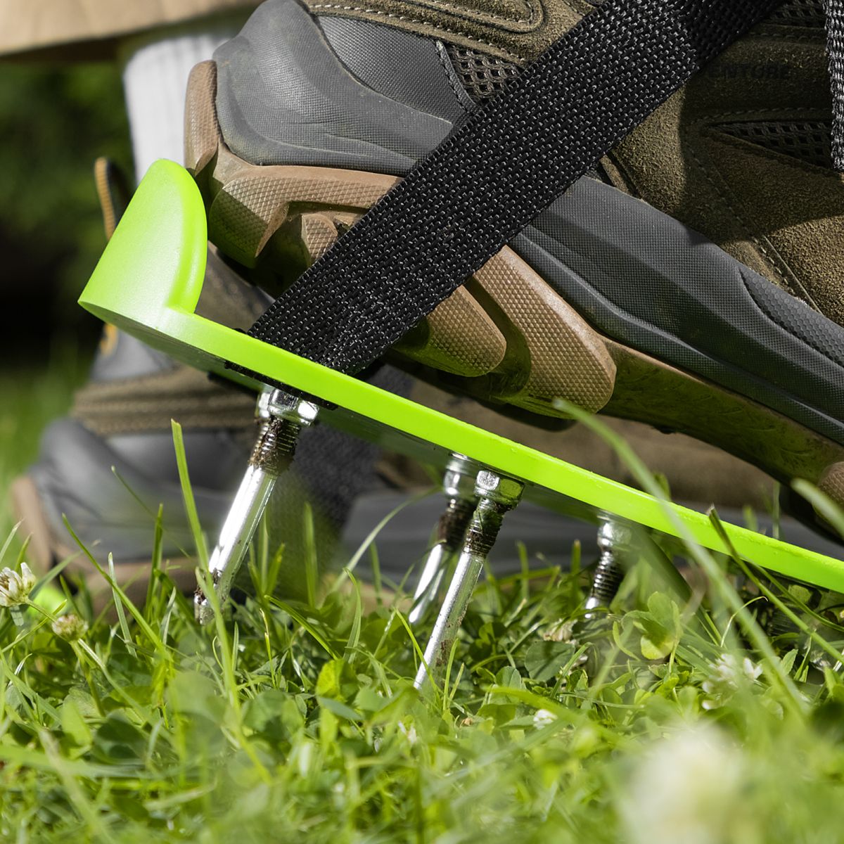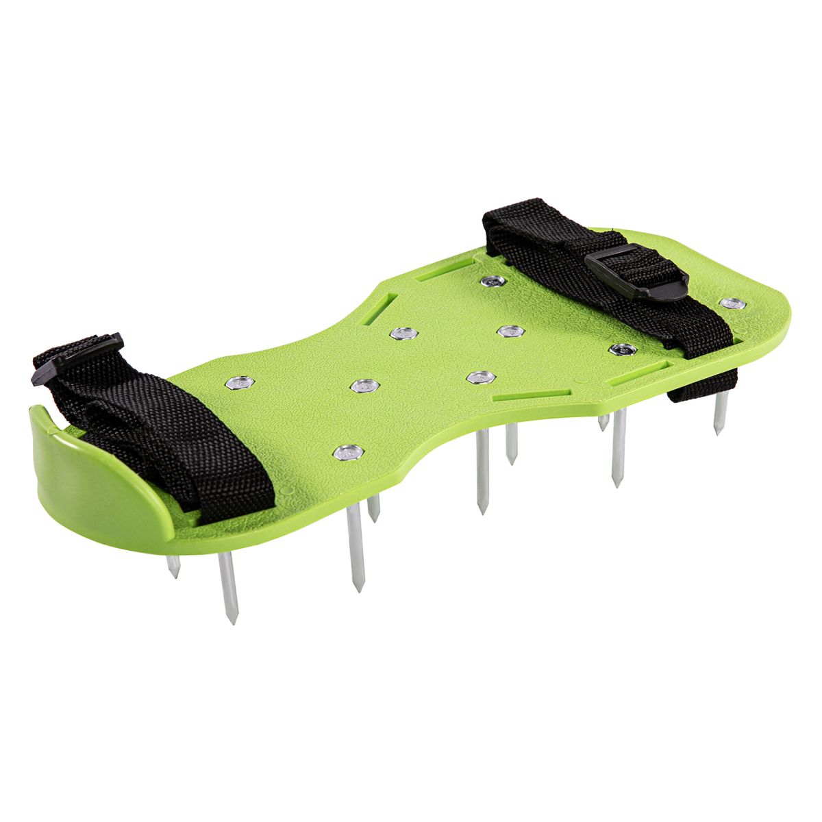 - Удобное использование — аэратор выполнен в форме платформ для ног с длинными стержнями, достаточно надеть их и походить по участку.