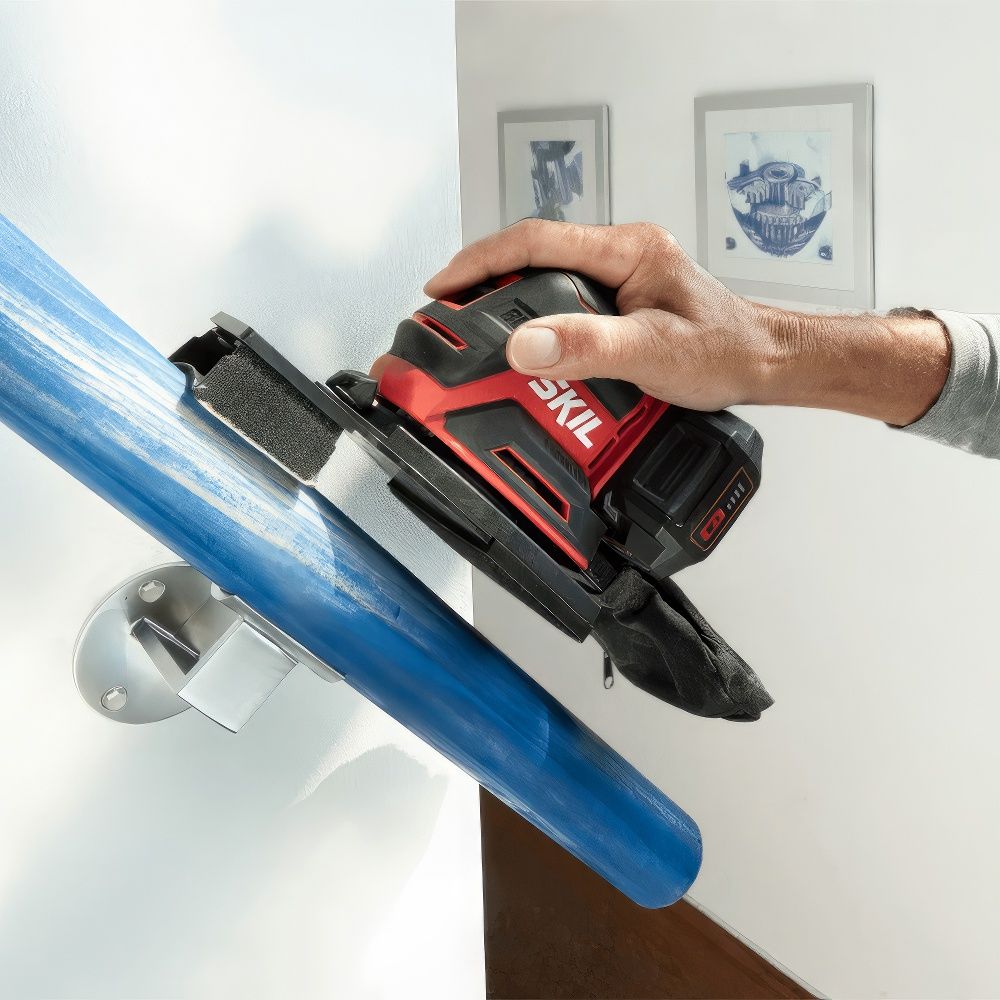 SKIL SR6607 — это многофункциональная аккумуляторная шлифовальная машина с бесщёточным двигателем, предназначенная для шлифовки различных поверхностей: от плоских и угловых до фигурных и труднодоступных участков. Благодаря сменным насадкам в комплекте, вы можете легко справиться с любыми задачами — от обработки широких панелей до шлифовки узких щелей, жалюзи или изогнутых поверхностей.