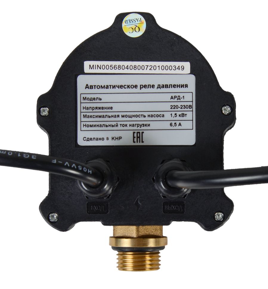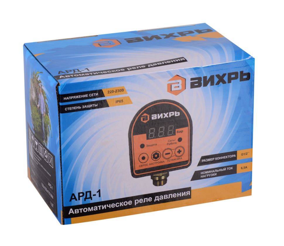 мощность насоса - до 1.5 кВт, номинальный ток нагрузки – 6.5 А, G1/2”