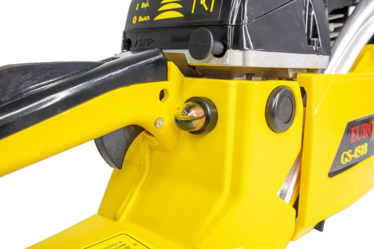 Модель оснащена бензиновым двигателем мощностью 2300 Вт рабочим объемом 45 куб.см. Емкость топливного бака в 550 мл позволяет долго работать. В качестве топлива рекомендуется использовать бензин АИ-92. Прорезиненные рукоятки обеспечивают надежный и комфортный хват. Натяжение цепи осуществляется с помощью специального винта, в комплекте имеется универсальный ключ. Чтобы цепь не перегревалась, она смазывается автоматически во время работы.