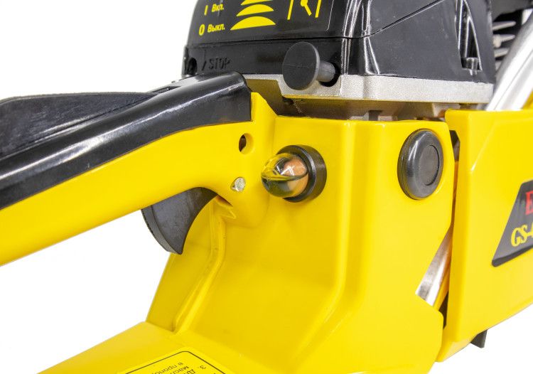 Особое внимание уделено безопасности. За счет специальной кнопки бензиновой цепной пилы обеспечивается блокировка от случайного включения. Благодаря функции торможения двигателя цепь быстро останавливается после выключения инструмента. Для защиты рук предусмотрена антивибрационная система.