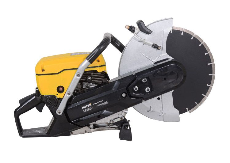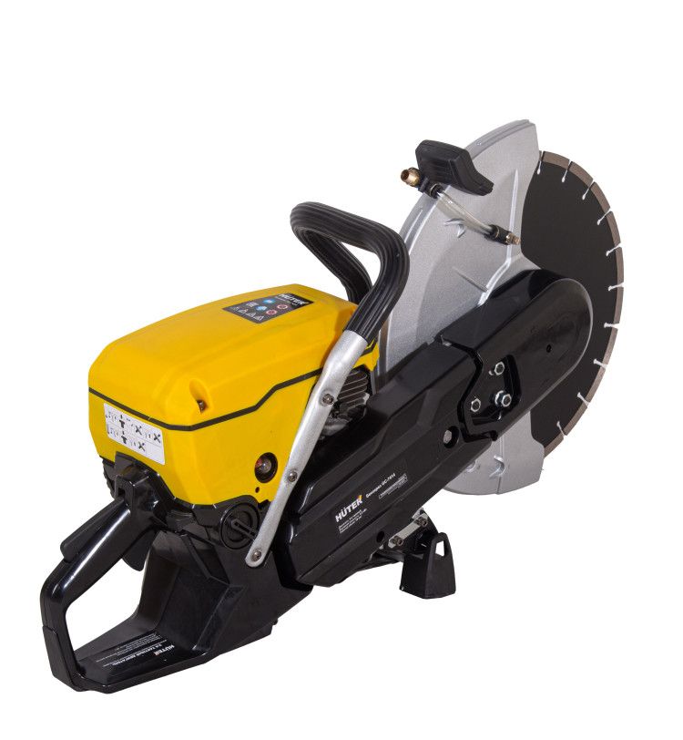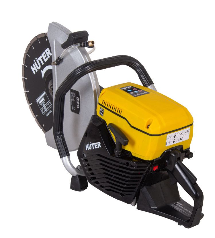 Бензорез Huter с карбюраторным двухтактным двигателем внутреннего сгорания представляет собой абразивно-отрезную машину для сухой или мокрой резки асфальта, бетона, камня и других минеральных пород, а также для резки различных металлов с использованием алмазных или абразивных отрезных кругов.