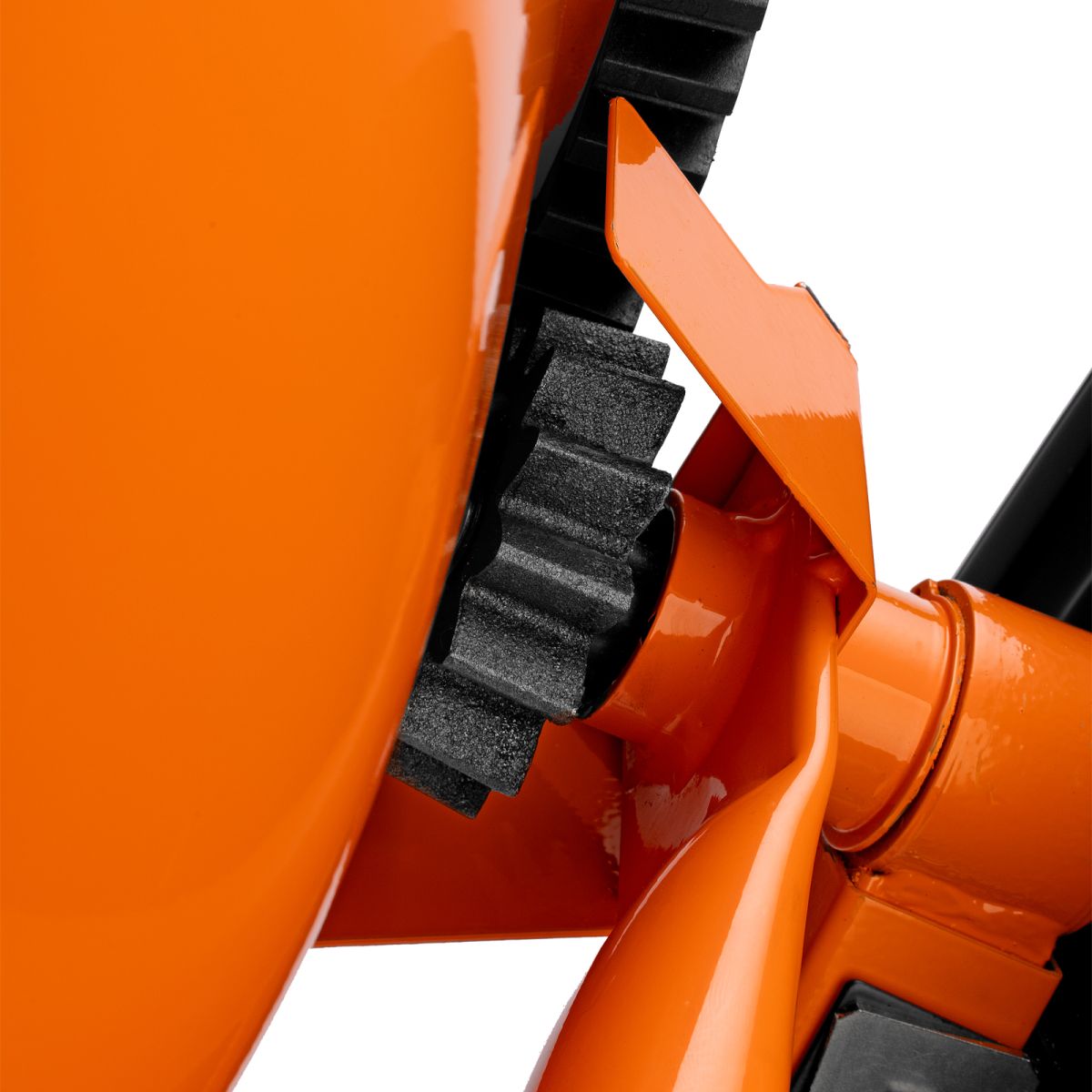 - Удобная загрузка и выгрузка смеси — барабан легко фиксируется в наклонном положении при помощи педали.