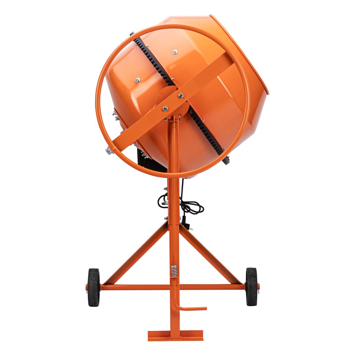 - Удобная загрузка и выгрузка смеси — барабан наклоняется при помощи маховика и легко фиксируется в нужном положении.