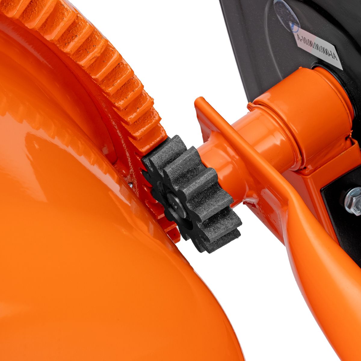 - Удобная загрузка и выгрузка смеси — барабан наклоняется при помощи маховика и легко фиксируется в нужном положении.