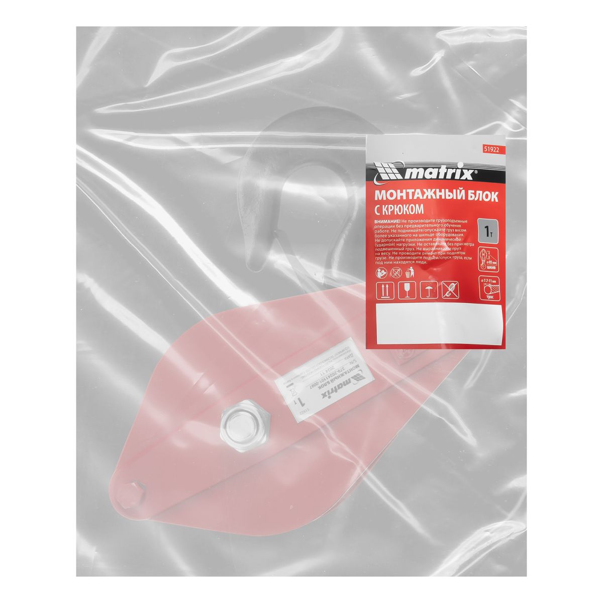 Монтажный блок Matrix 51921 с крюком, грузоподъемностью 0,5 т, расширяет функциональные возможности ручного и электрического грузоподъемного оборудования. Позволяет менять направление движения груза, а также увеличивает подъемную силу.