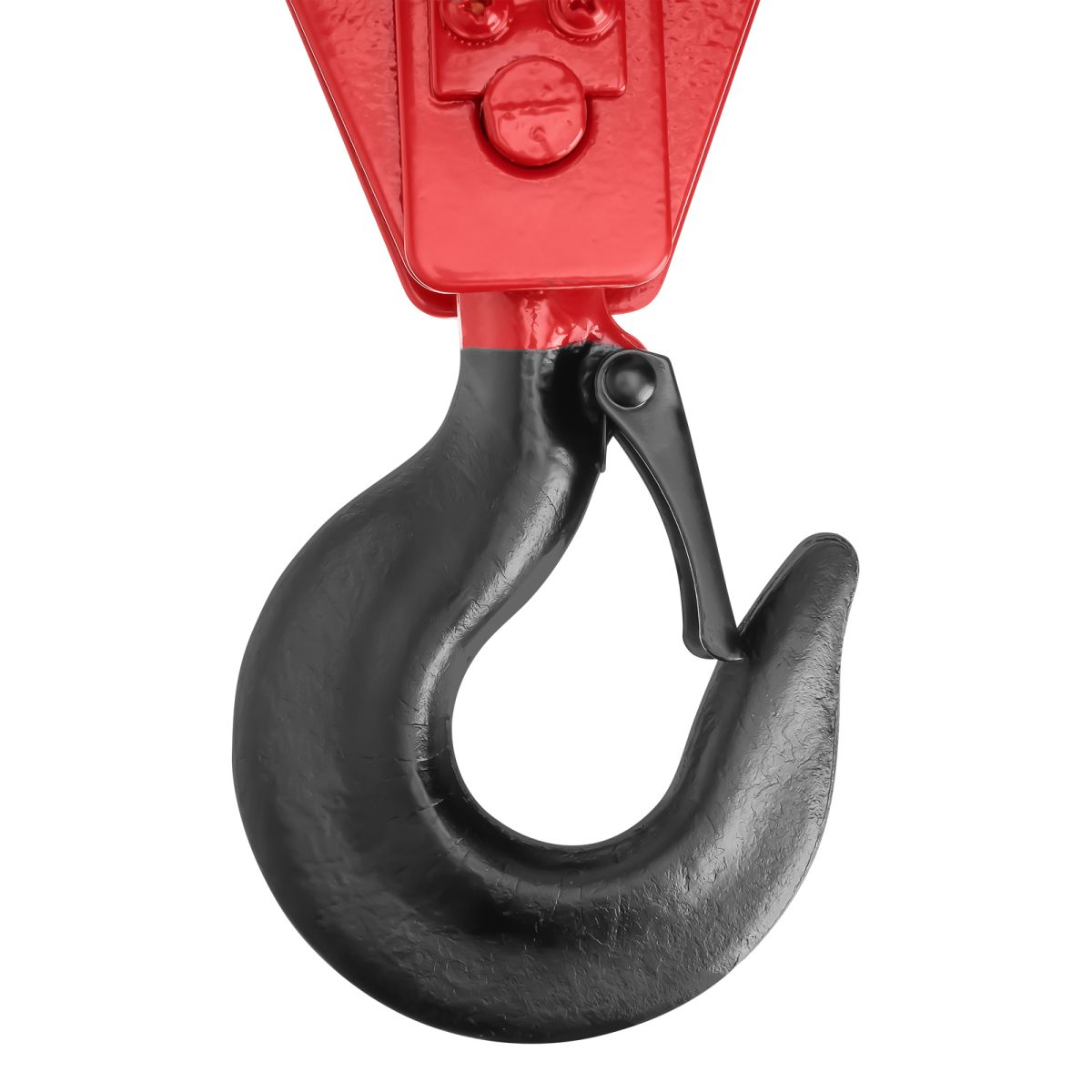 - Безопасная работа — кованая предохранительная защелка на крюке обеспечивает надежную фиксацию груза.
