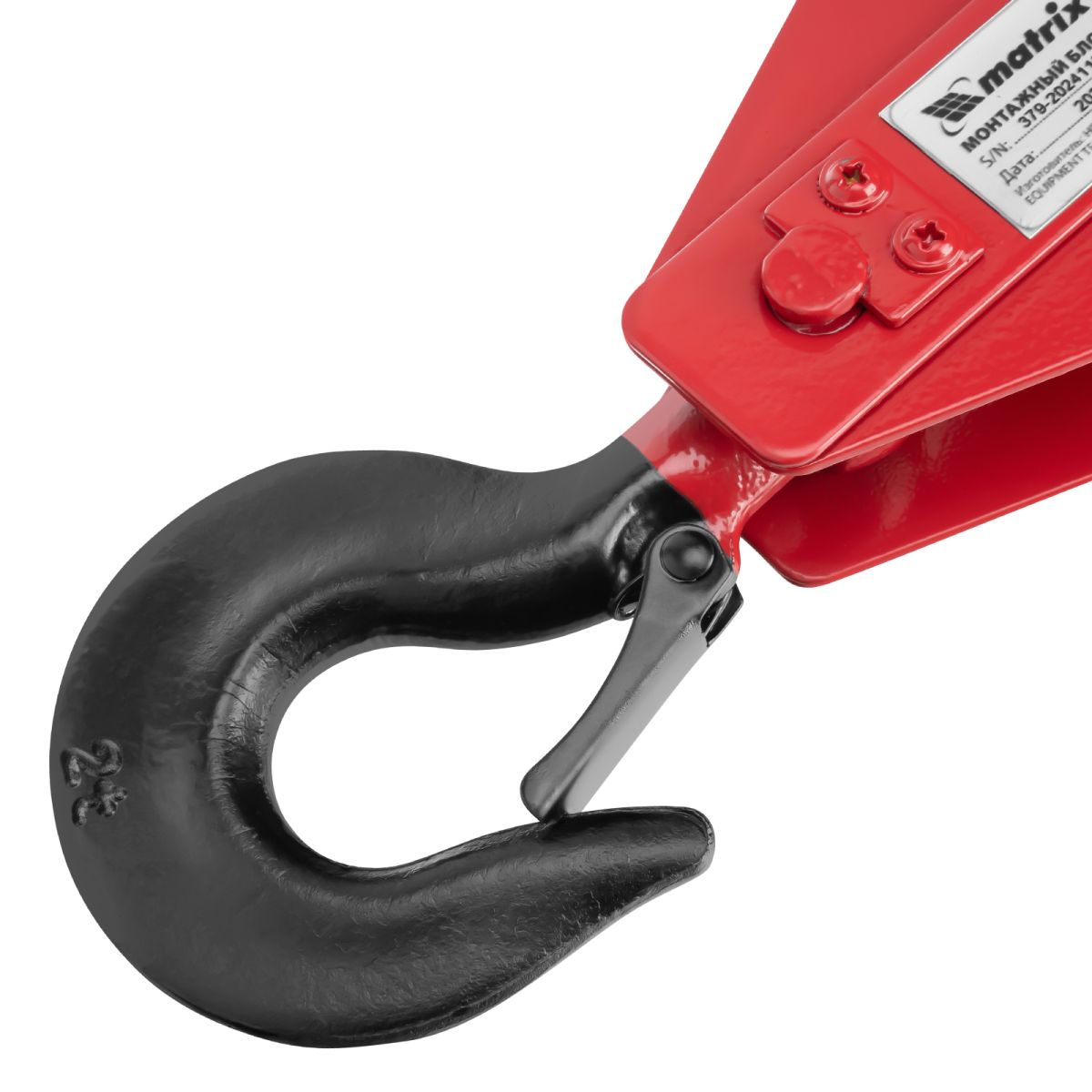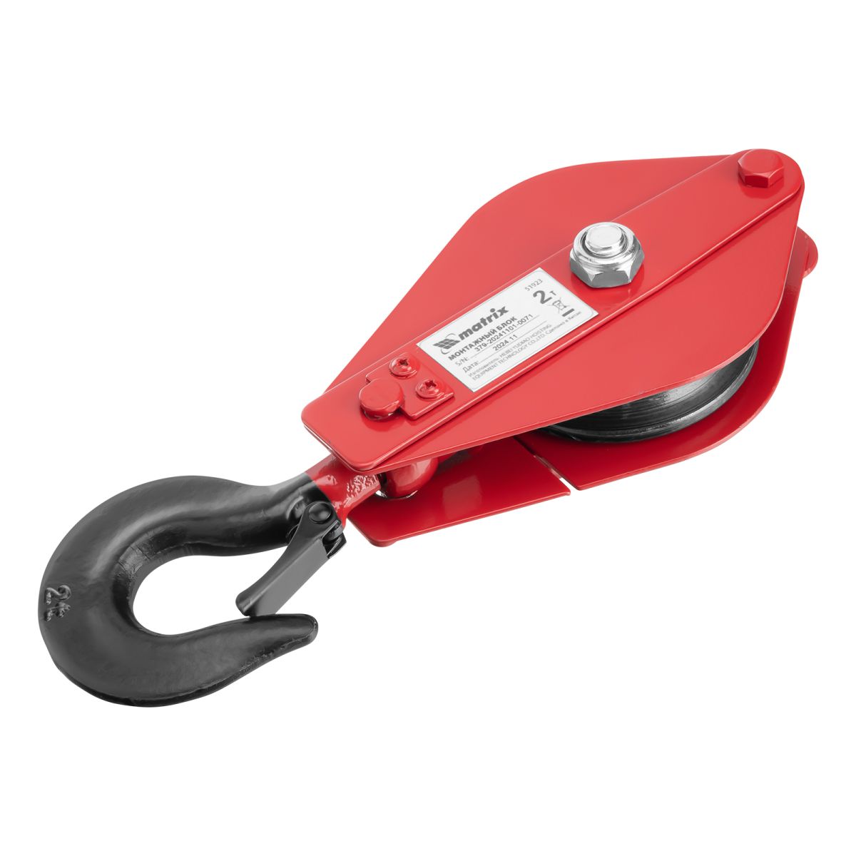 Монтажный блок Matrix 51923 с крюком, грузоподъемностью 2 т, расширяет функциональные возможности ручного и электрического грузоподъемного оборудования. Позволяет менять направление движения груза, а также увеличивает подъемную силу.