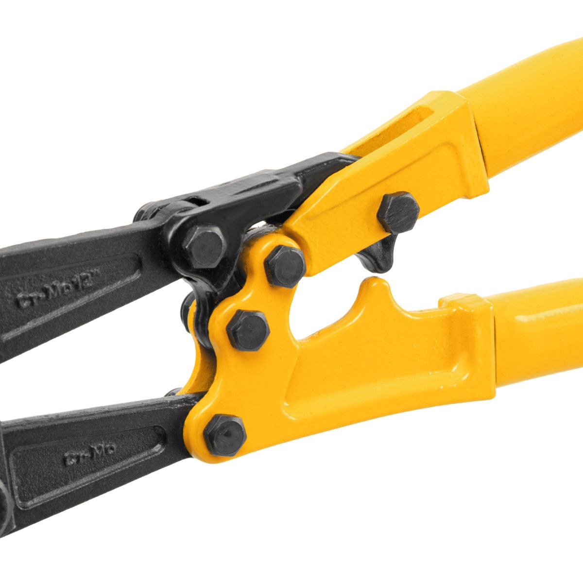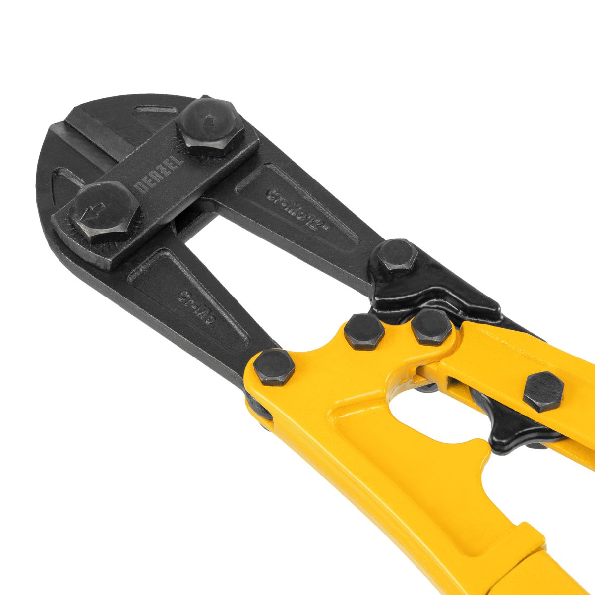 Болторез Denzel 78531 длиной 300 мм (12 дюймов), из стали Cr-Mo, предназначен для перекусывания стальных прутков диаметром 4,8 мм, болтов и шурупов, тросов, разнородной проволоки.