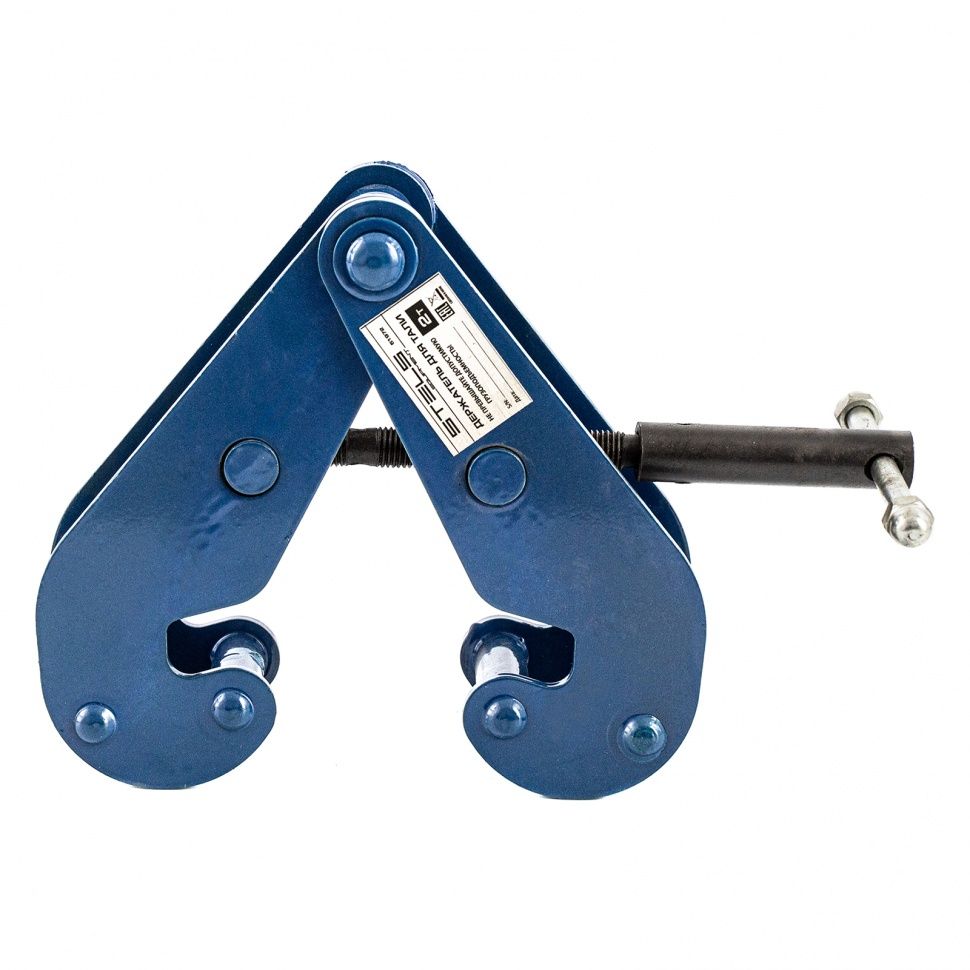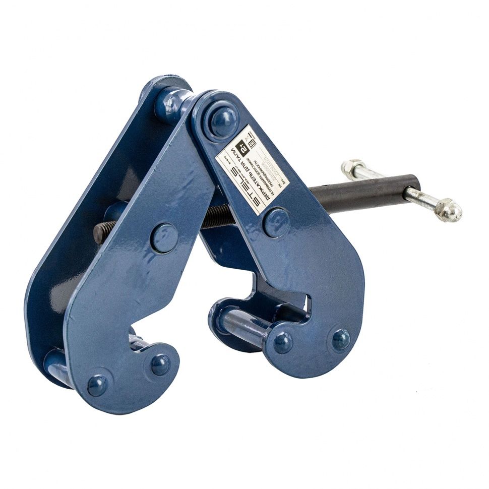 Держатель для тали Stels 51972 позволяет зафиксировать ее на балке шириной от 75 до 220 мм для подъема грузов весом до 2 т. Благодаря симметричной конструкции держателя нагрузка распределяется равномерно по центру балки, что повышает надежность грузоподъемной системы.