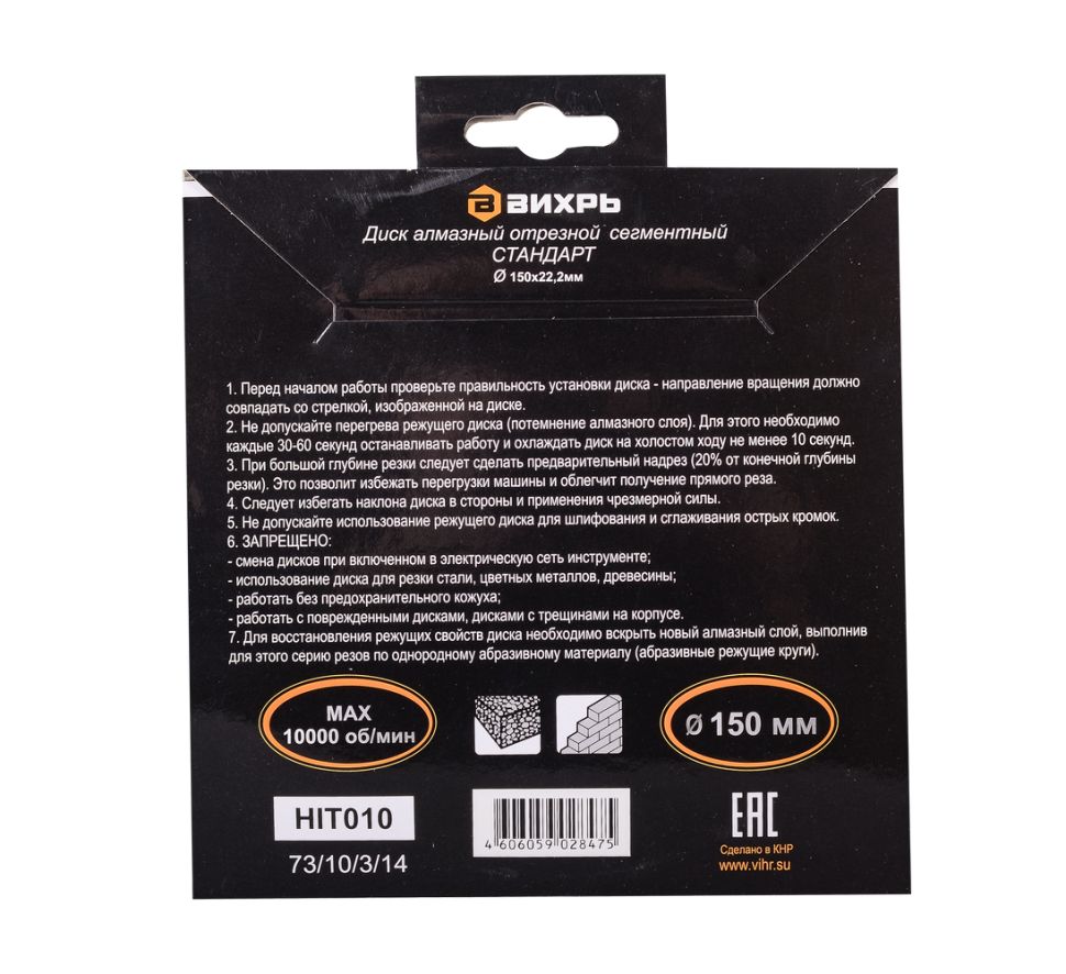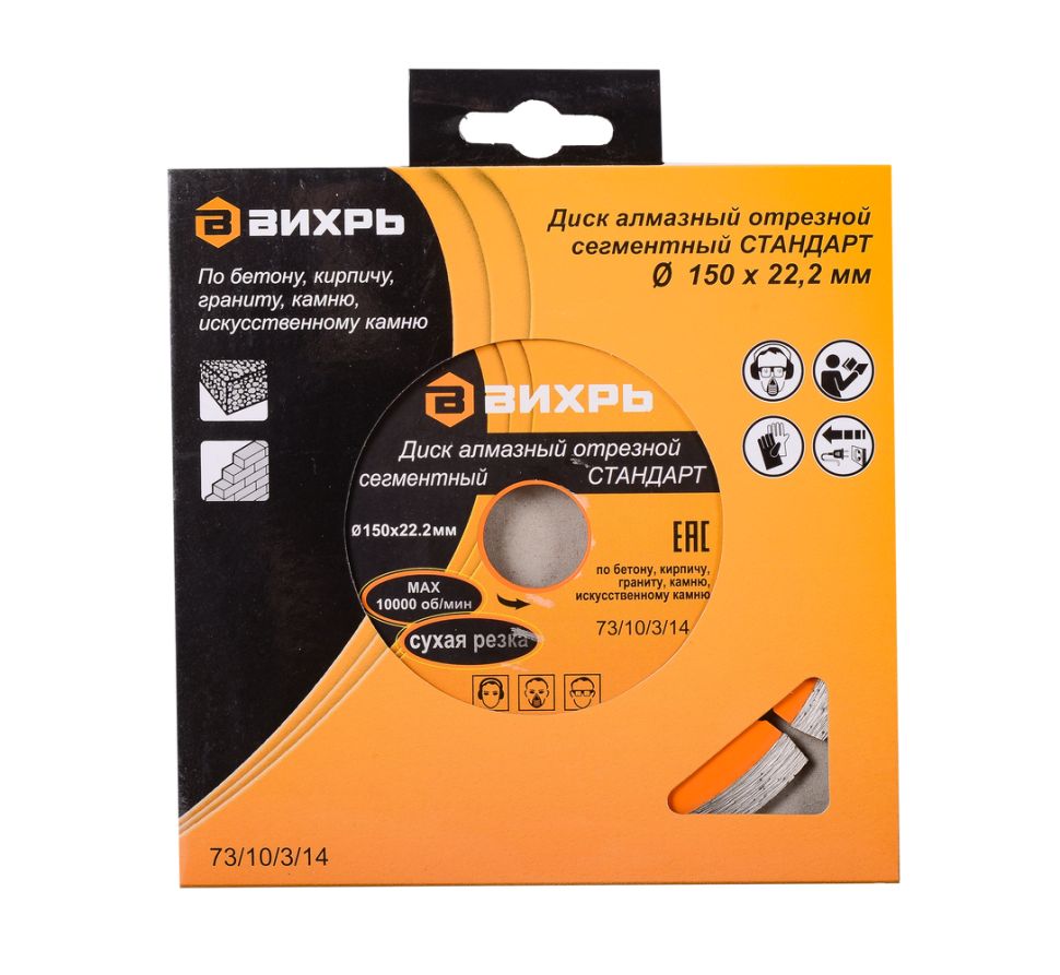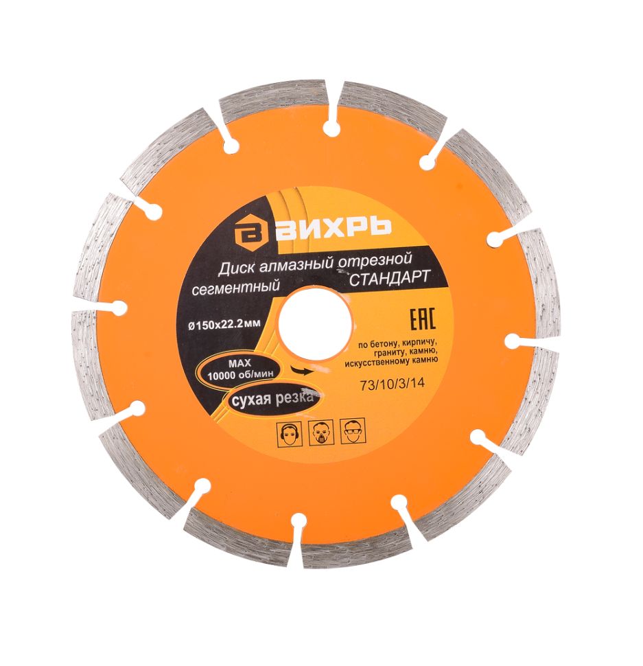 Диск алмазный отрезной сегментный СТАНДАРТ Вихрь, 150х22,2 мм, сухая резка
