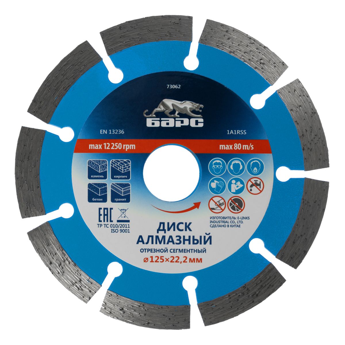 Диск алмазный, сегментный 125 х 22.2 мм, сухая резка Барс