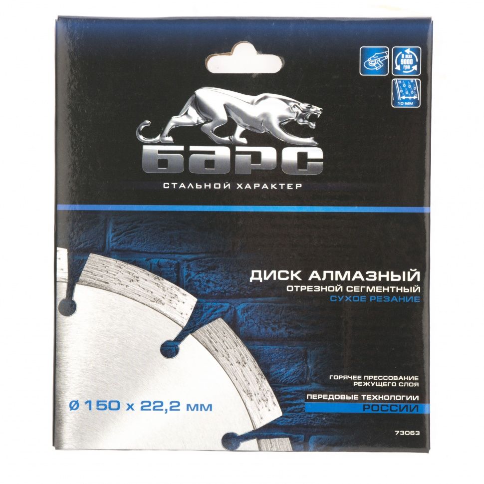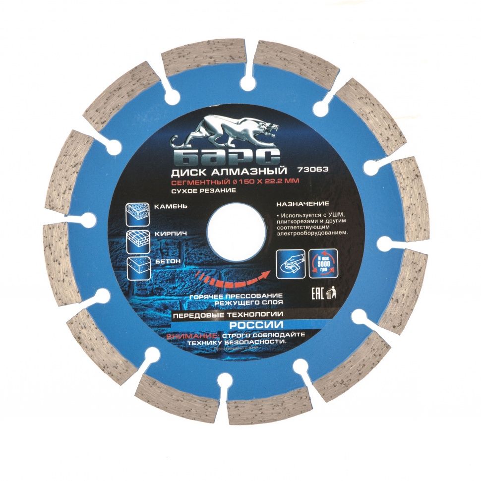 Диск алмазный, сегментный 150 х 22.2 мм, сухая резка Барс