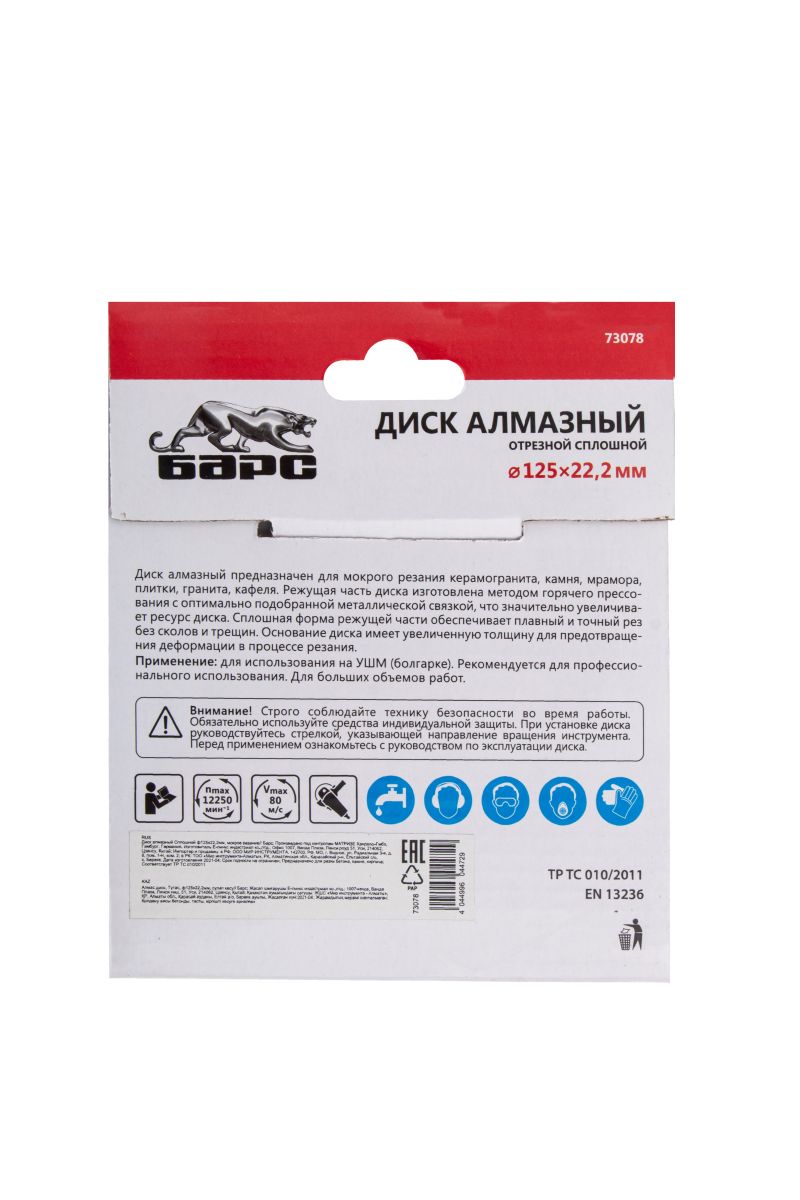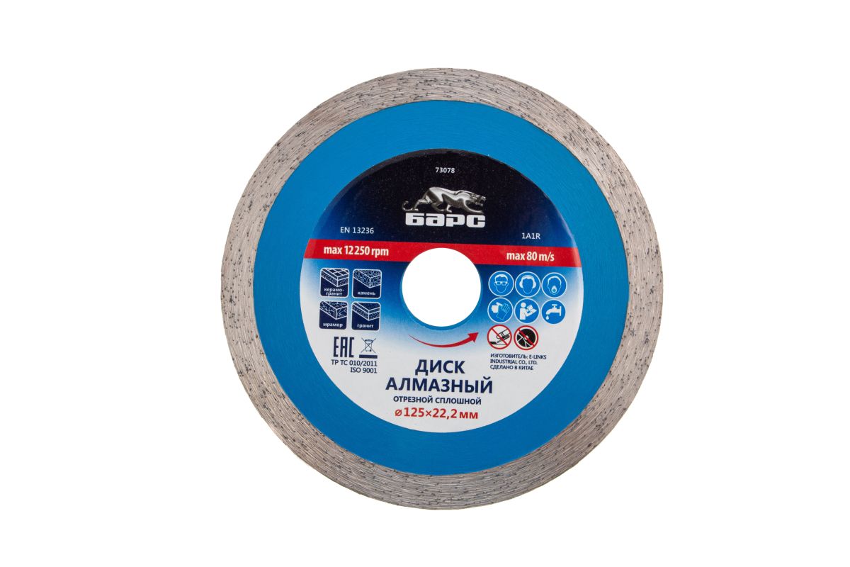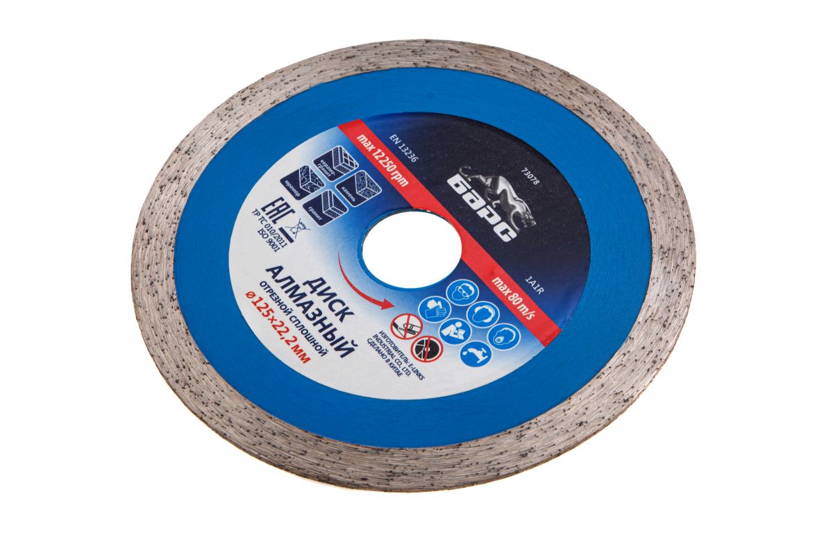 Диск алмазный, сплошной 125 х 22.2 мм, мокрая резка Барс