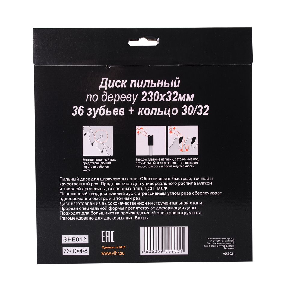Диск пильный по дереву Вихрь 230х32мм 36 зубьев