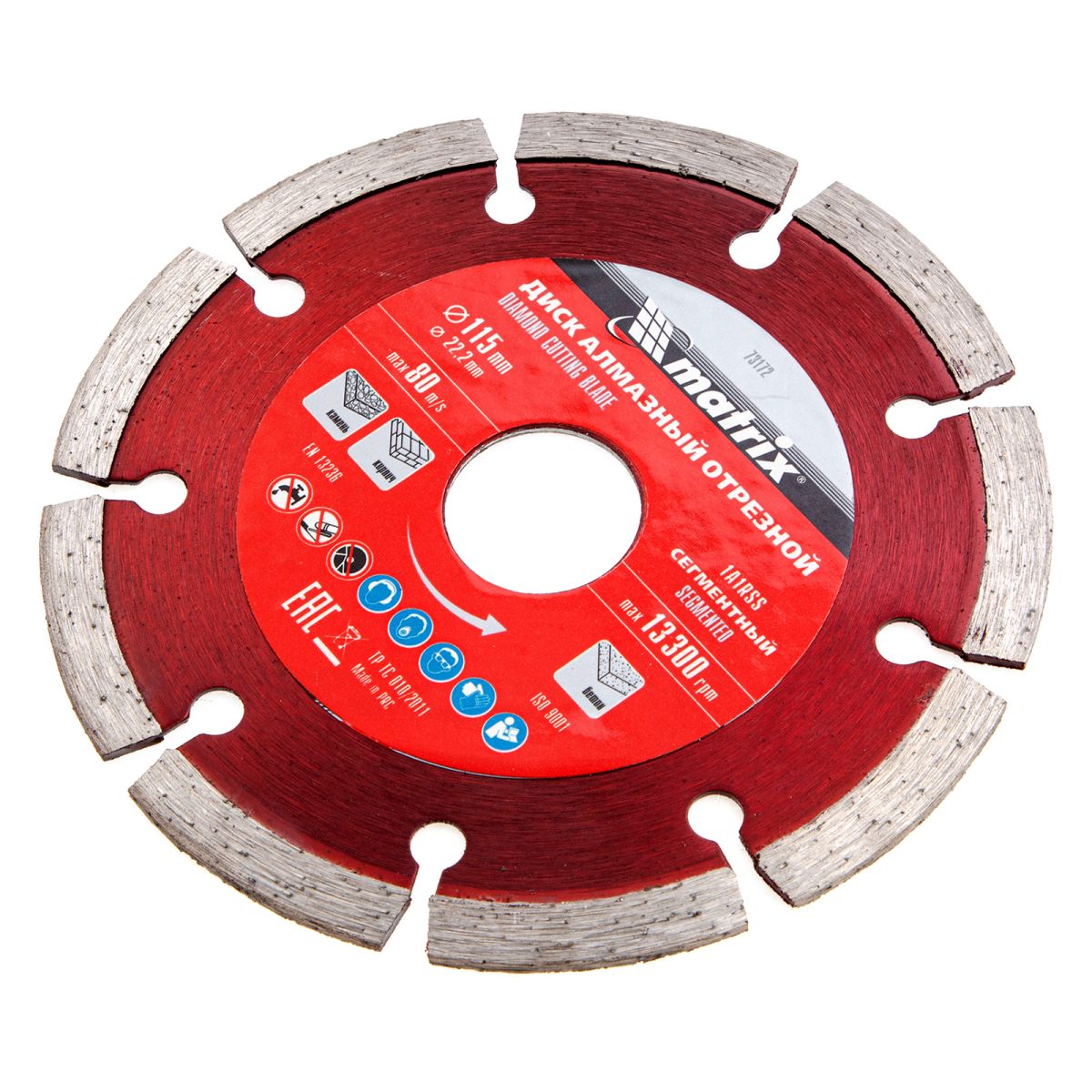 Алмазный отрезной сегментный диск Matrix 73172 диаметром 115 х 22,2 мм предназначен для сухой резки натурального и искусственного камня, кирпича, свежего и твердого бетона. Применяется с углошлифовальными машинами соответствующего типоразмера. Благодаря высокой скорости реза диск позволяет выполнять работы большого объема. Он пригодится на небольших строительных площадках и будет идеальным помощником при решении бытовых задач.