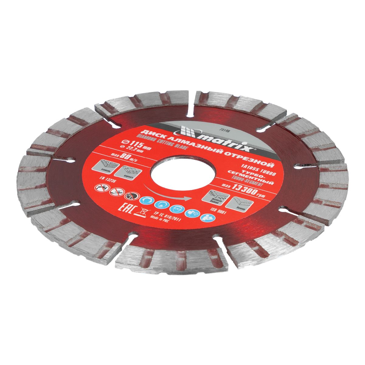 Турбо-сегментный отрезной алмазный диск Matrix 73140 диаметром 115 х 22,2 мм предназначен для сухой резки бетона различной прочности, камня, кирпича, тротуарной плитки, шлакоблока. Устанавливается на углошлифовальную машину с посадочным размером 22,2 мм. Благодаря специально подобранной металлической связке диск демонстрирует высокие результаты работы даже при резке слабоармированного железобетона. Оснастка оптимальна для бытового применения.