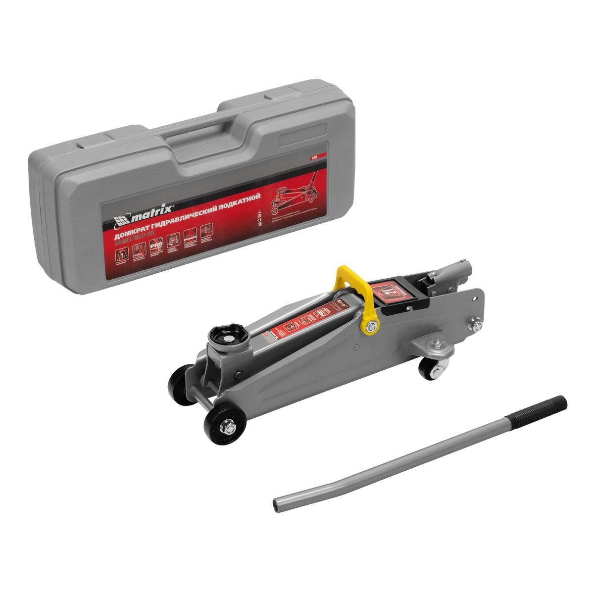 Подкатной гидравлический домкрат Matrix 51028 с высотой подхвата 135 мм, поставляющийся в пластиковом кейсе, — полупрофессиональное гаражное оборудование, способное поднимать груз массой до 2 т на высоту до 385 мм. Высота подхвата 135 мм позволяет использовать домкрат для автомашин со стандартным клиренсом. Домкрат будет полезен как в автомастерской, так и в частном гараже.