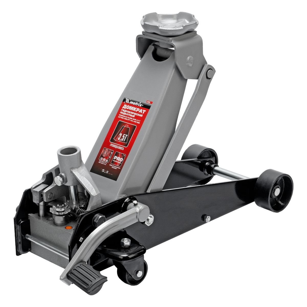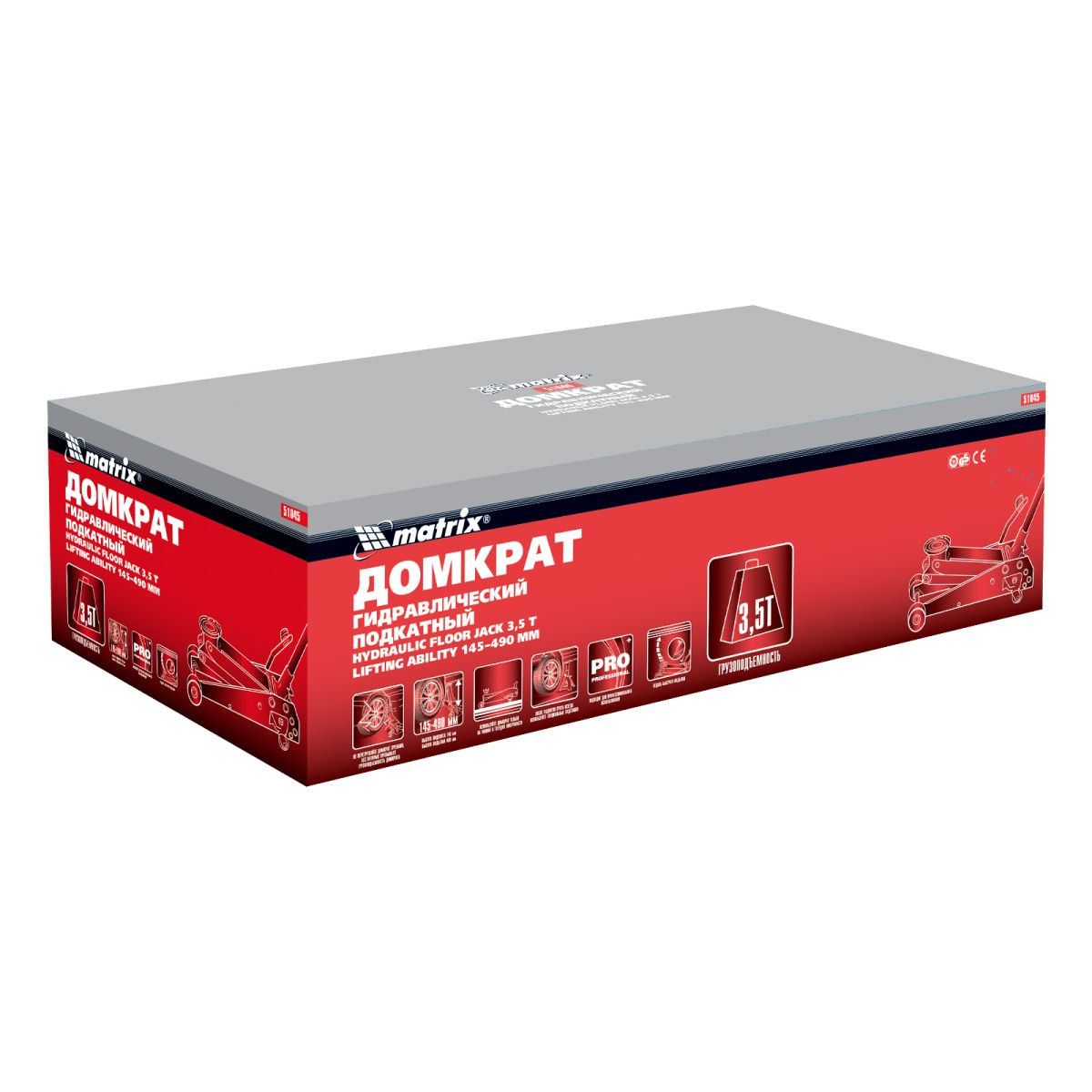 Подкатной гидравлический домкрат Matrix 51045 с педалью, с высотой подхвата 145 мм, — полупрофессиональное гаражное оборудование, способное поднимать груз массой до 3,5 т на высоту до 490 мм. Высота подхвата 145 мм позволяет использовать домкрат для автомашин со стандартным клиренсом. Домкрат будет полезен как в автомастерской, так и в частном гараже.
