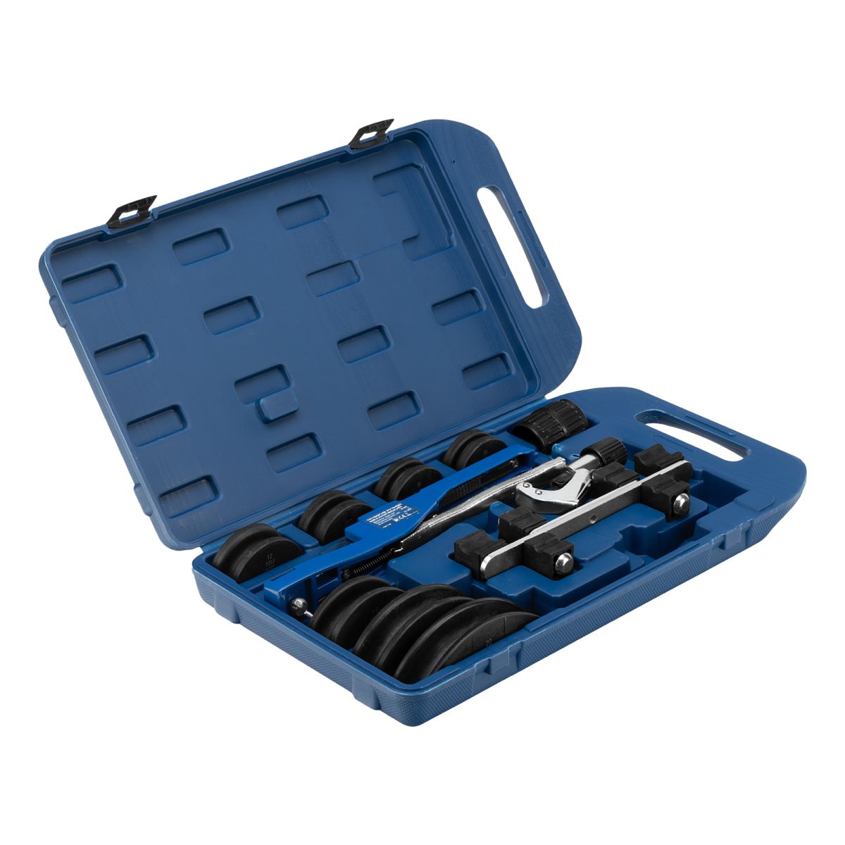 - Решение широкого спектра задач — в комплект входит 7 насадок для сгибания труб диаметром 6-22 мм и с толщиной стенок до 1 мм.