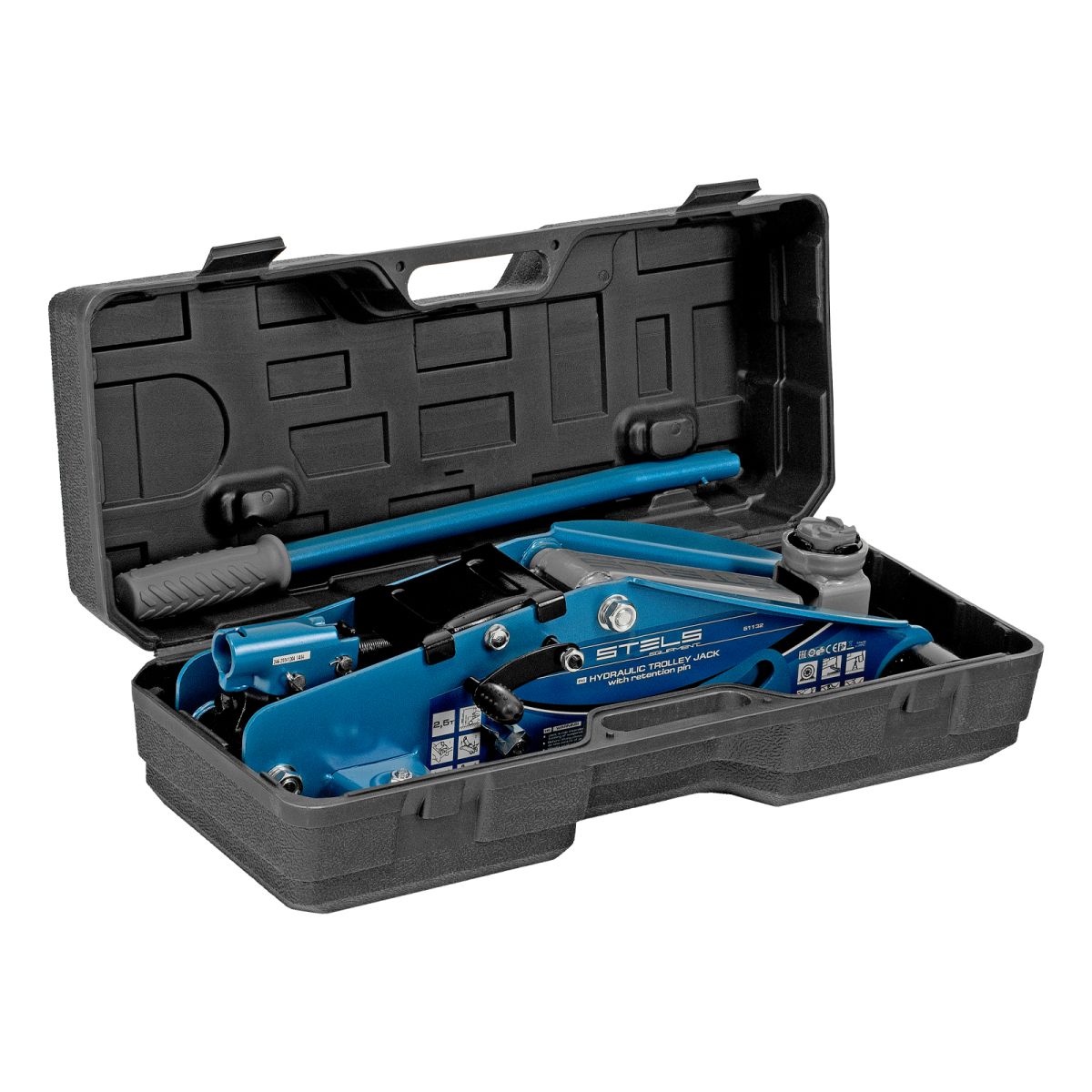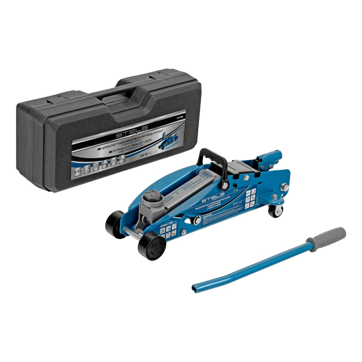 Подкатной гидравлический домкрат Stels Safety Pin 51132 с фиксатором, с высотой подхвата 140 мм, поставляющийся в кейсе, позволяет поднимать грузы весом до 2,5 т на высоту 385 мм. Используется для обслуживания автомобилей со стандартным дорожным просветом. Домкрат подходит для самостоятельного обслуживания авто.