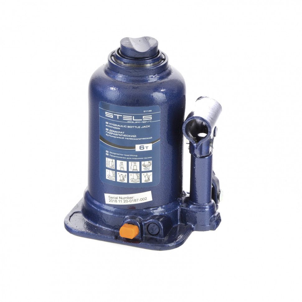 Гидравлический бутылочный телескопический домкрат Stels 51146 используется для поднятия грузов весом до 6 т с на высоту 170-430 мм. Не требует больших усилий и оптимален для автомобилей с большим клиренсом. Домкрат можно использовать в гараже для самостоятельного ремонта машины или в автосервисе для решения профессиональных задач.