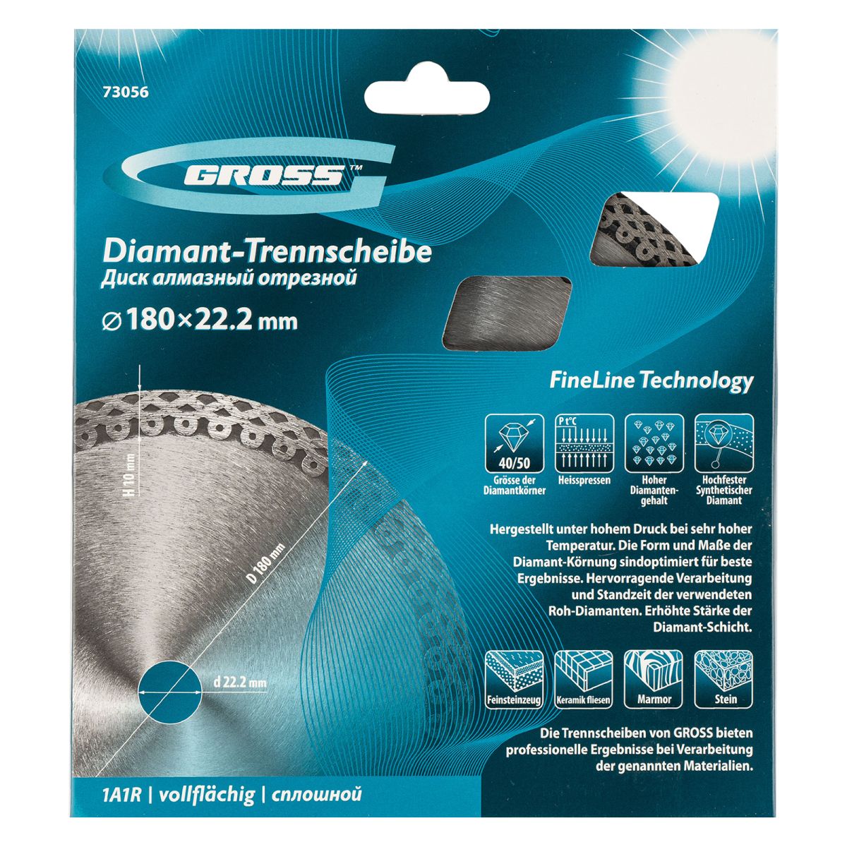 Тонкий сплошной алмазный диск Gross Jaguar 73056 диаметром 180 х 22,2 мм предназначен для «мокрого» резания и подходит для профессионального использования с УШМ или плиткорезом соответствующего типоразмера. Применяется для работы с твердыми материалами: гранитом, керамогранитом, плиткой, мрамором и камнем. Сплошной диск оставляет ровный срез без трещин и сколов. Благодаря водяному охлаждению он легко справляется с большими объемами работ.