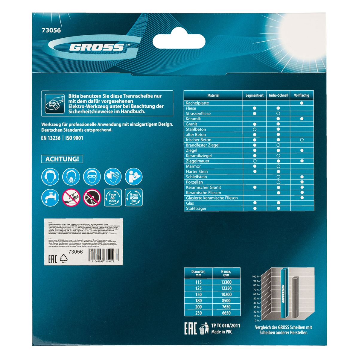 - Надежность — диск изготовлен методом горячего прессования, тщательно подобранная металлическая связка содержит кобальт, серебро и другие компоненты, обеспечивающие устойчивость к перегреву и высоким нагрузкам.