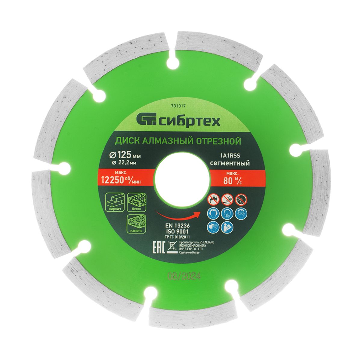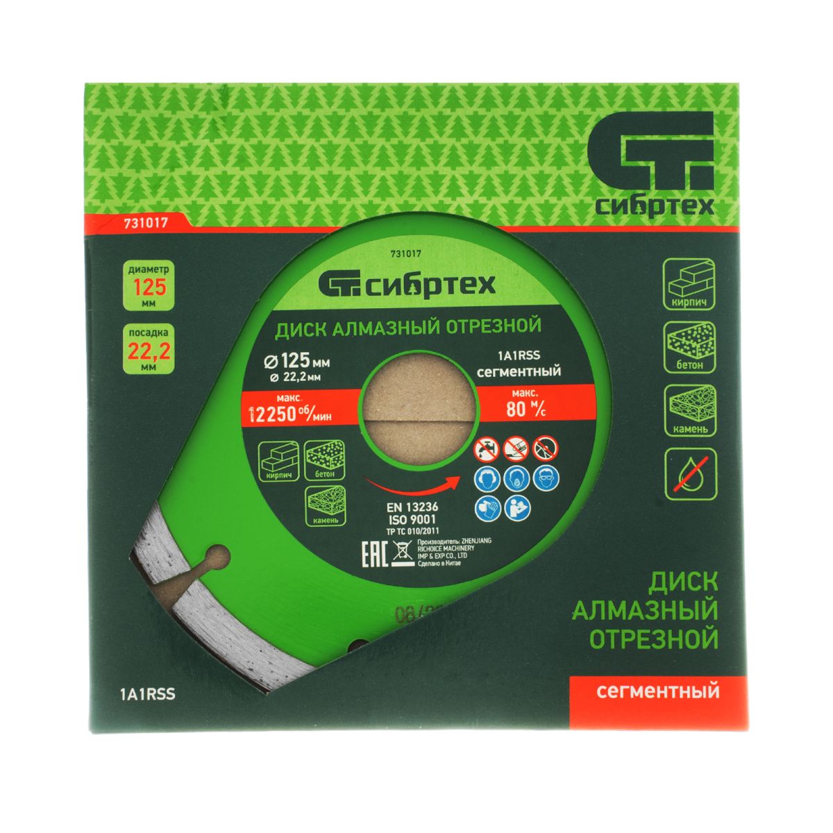 Сегментный отрезной алмазный диск Сибртех 731017 диаметром 125 х 22,2 мм применяется для сухой резки бетона, камня, шлакоблока, тротуарной плитки и кирпича. Устанавливается на углошлифовальную машину с посадочным диаметром 22,2 мм. Подходит для интенсивной работы, оптимален для решения бытовых задач.