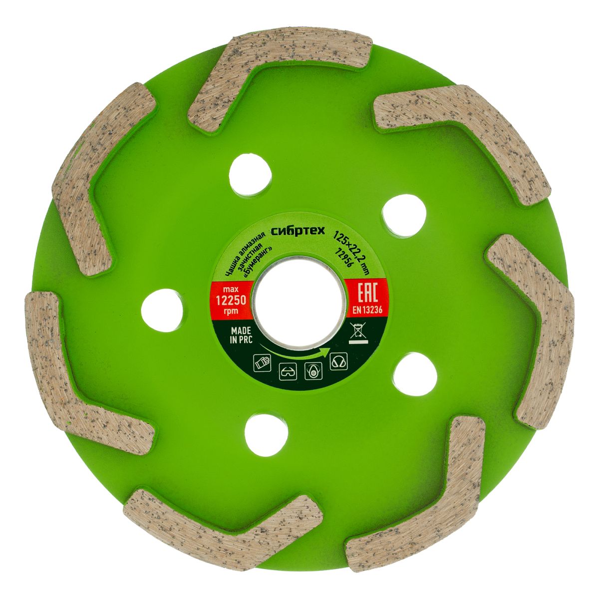 Зачистная алмазная чашка Сибртех «Бумеранг» 72956 диаметром 125 мм предназначена для обработки мраморных, гранитных, бетонных, кирпичных и каменных поверхностей. Универсальную чашку можно использовать для черновой обработки (снятия небольших неровностей) и для выравнивания, получения гладких поверхностей. Чашка используется в качестве оснастки для УШМ с посадочным диаметром 22,2 мм, рассчитана на бытовое применение.