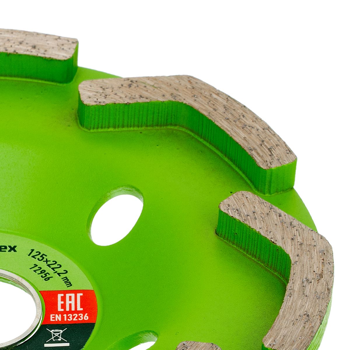 - Плавная и эффективная работа — алмазные сегменты имеют форму бумерангов, перфорированный корпус обеспечивает эффективный отвод пыли.