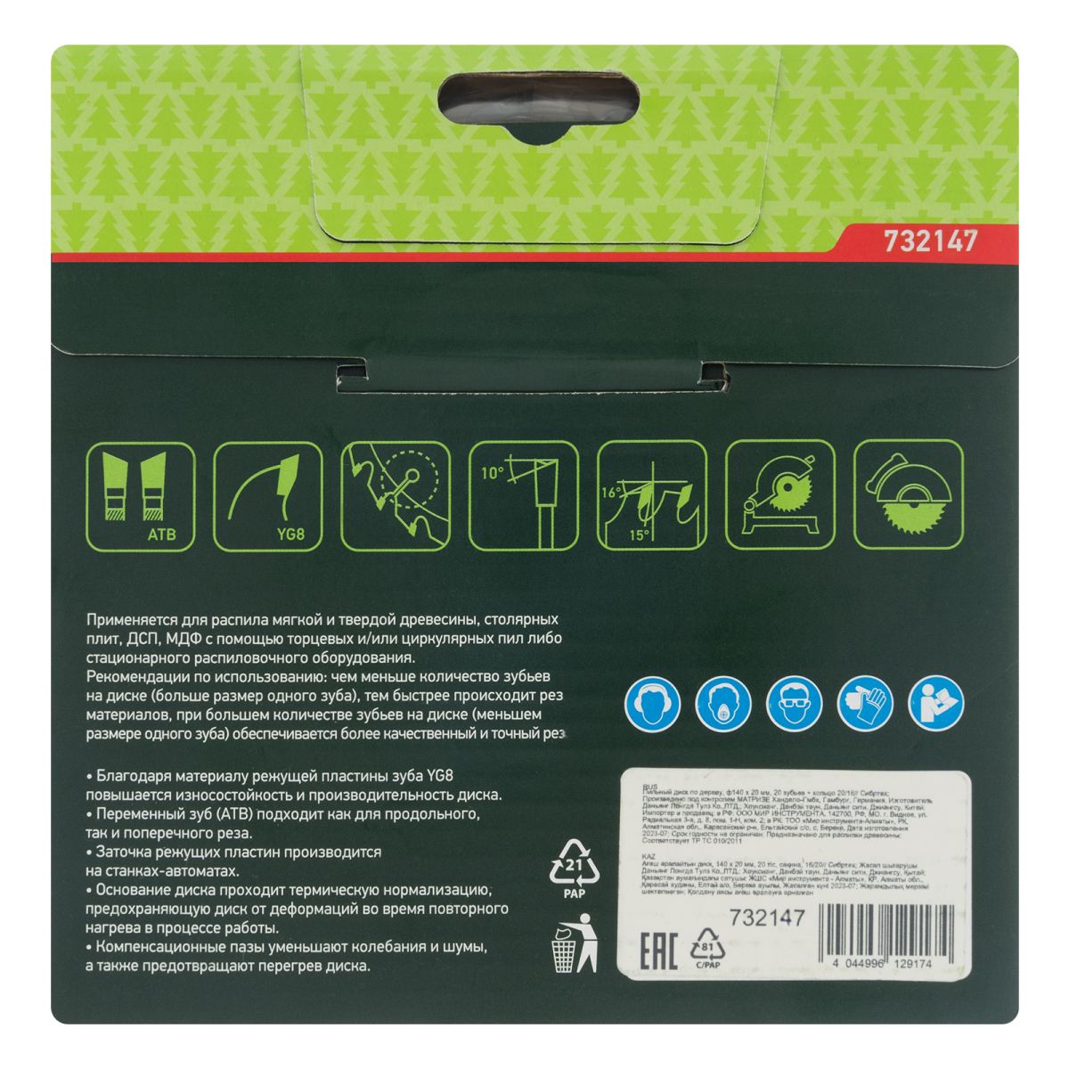 • Прочность и высокая производительность — основание диска изготовлено из стали 50, режущие пластины выполнены из твердого сплава YG8 и заточены с использованием алмазного абразива.