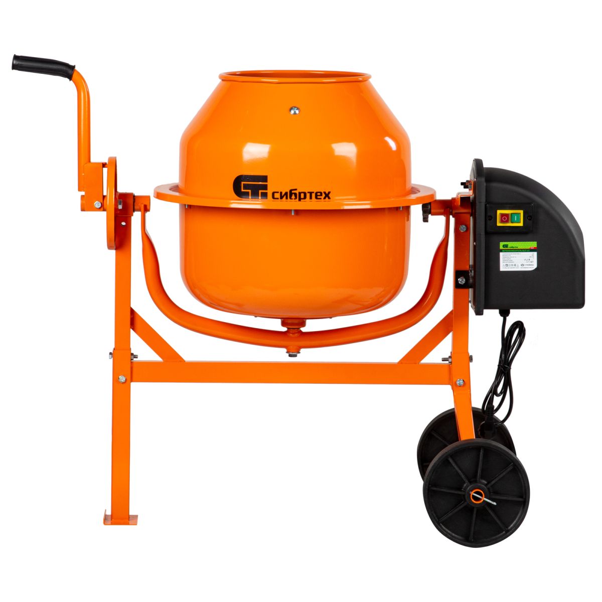 Бетоносмеситель Сибртех БСЛ-63 95469 объемом 63 литра и мощностью 300 Вт применяется при производстве штукатурки для отделки стен, подвижных бетонных растворов для работ с фундаментом и стяжки пола, клеевых смесей для укладки плитки. Малый размер барабана позволяет использовать устройство в небольших помещениях, без труда перемещая его в нужное место. При максимально допустимом заполнении на выходе получится до 40 л готовой смеси. Венец из прочной перфорированной стали выдерживает несколько рабочих циклов с небольшими перерывами, что позволяет ускорить процесс работы.