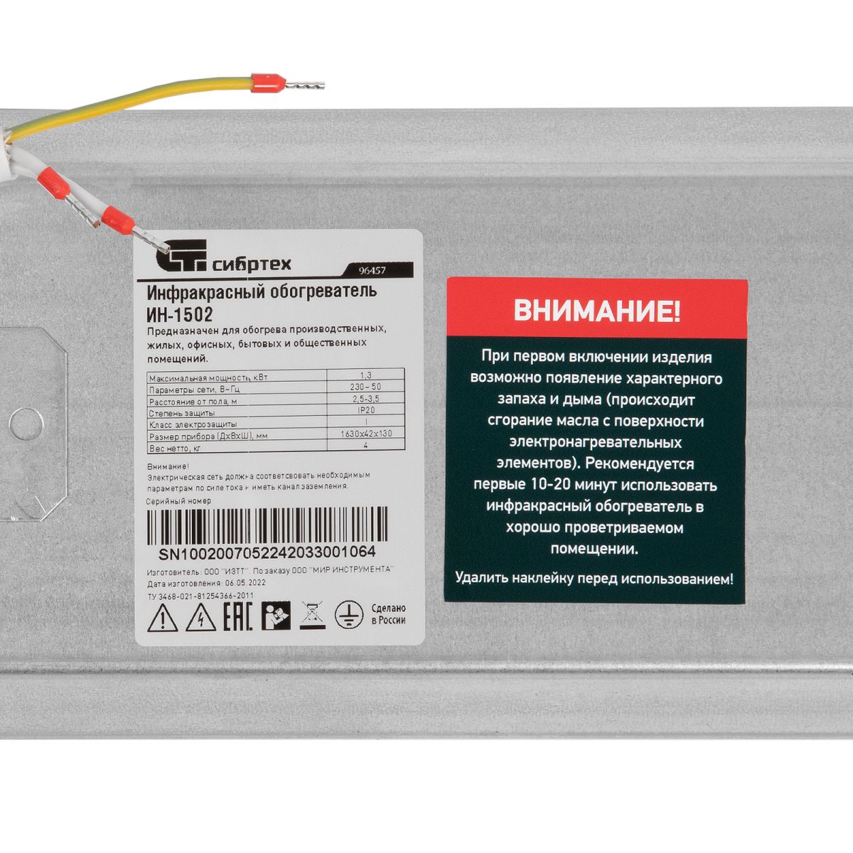 Инфракрасный обогреватель Сибртех ИН-1502 96457 подключается к сети 230 В, потребляет мощность до 1400 Вт и предназначен для создания комфортных температурных условий в помещении в холодное время года. Служит основным источником тепла на площади до 13 кв. м и дополнительным — в помещениях до 26 кв. м.,Одно из ключевых преимуществ обогревателя — энергоэффективность. Инфракрасное тепло передается сквозь воздух, не нагревая его, а нагревая предметы, находящиеся на расстоянии. Примерно по такому принципу на Землю передается тепло от Солнца. Вы ощутите его сразу, не дожидаясь прогрева всего воздуха в помещении.