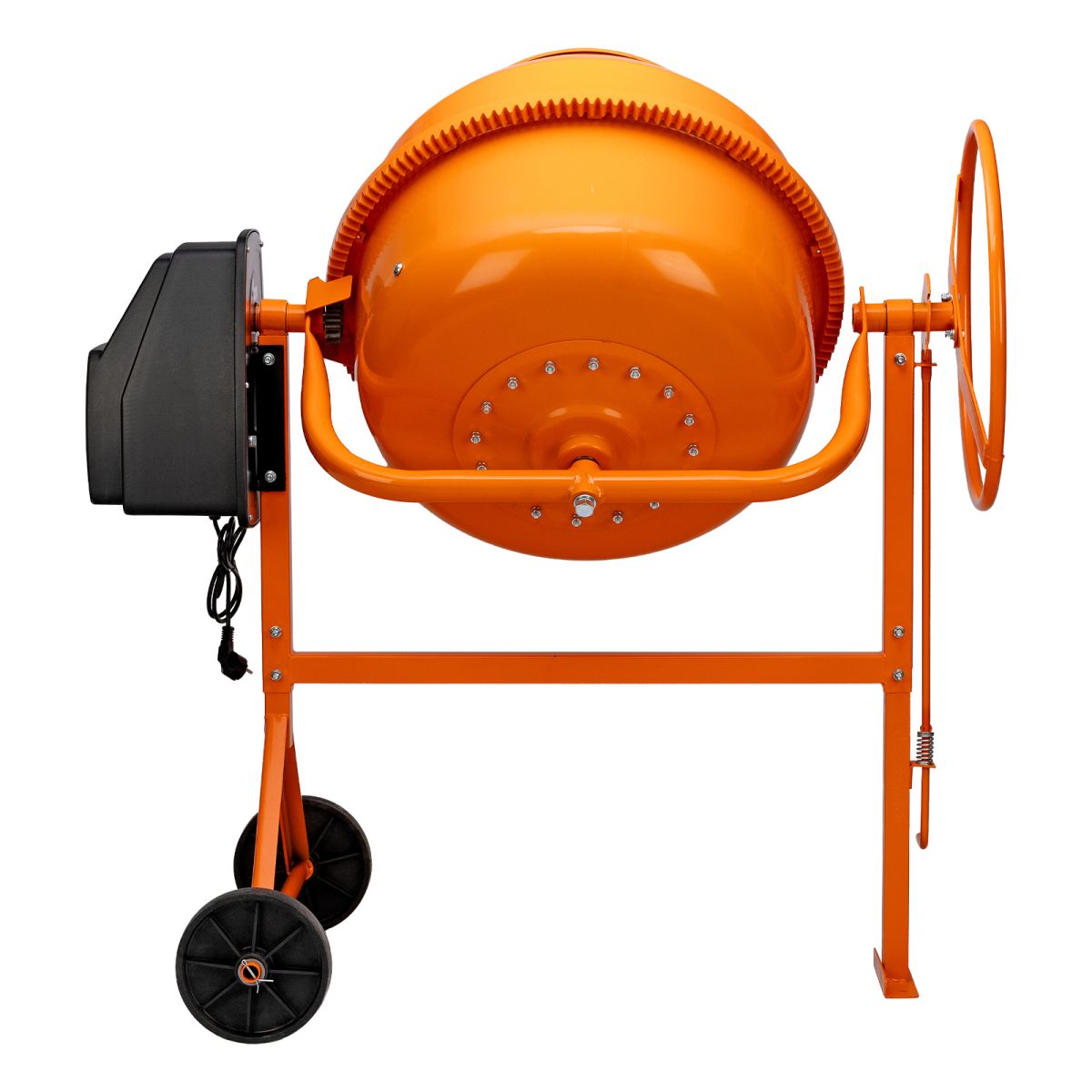 - Удобное перемещение — колеса из высокопрочного пластика обеспечивают мобильность бетономешалки.