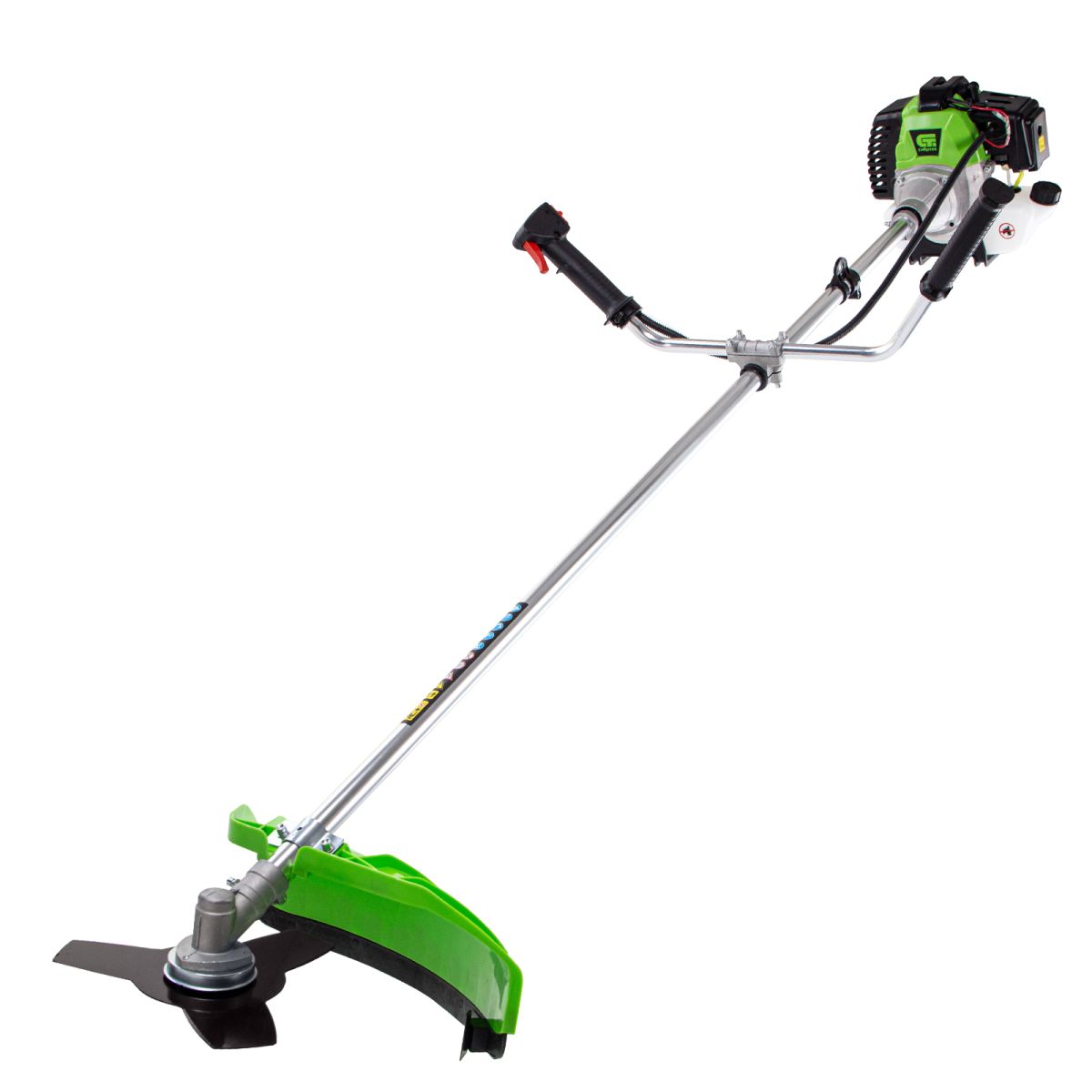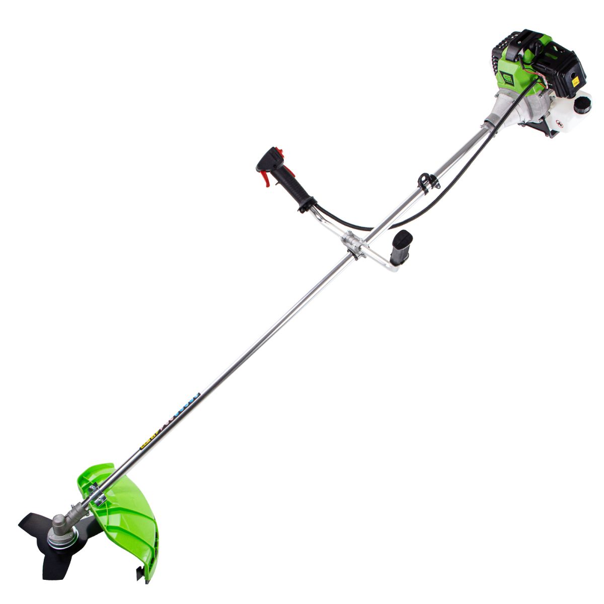 Бензиновый триммер Сибртех КС-3000Н 962555 с неразъемной штангой имеет двигатель увеличенного объема 52 куб. см, поставляется комплектом из 2 частей и предназначен для ухода за дачным участком. Используется для стрижки и скашивания травы, обработки границ газонов и борьбы с сорняками. Для эффективного решения этих задач предусмотрены катушка с леской и трехлопастный нож, легко срезающий густую траву и толстые стебли. Ширина скашивания леской составляет 42 см, ножом — 25,5 см, что в сочетании с мощностью двигателя 3 л. с. обеспечивает высокую производительность триммера.