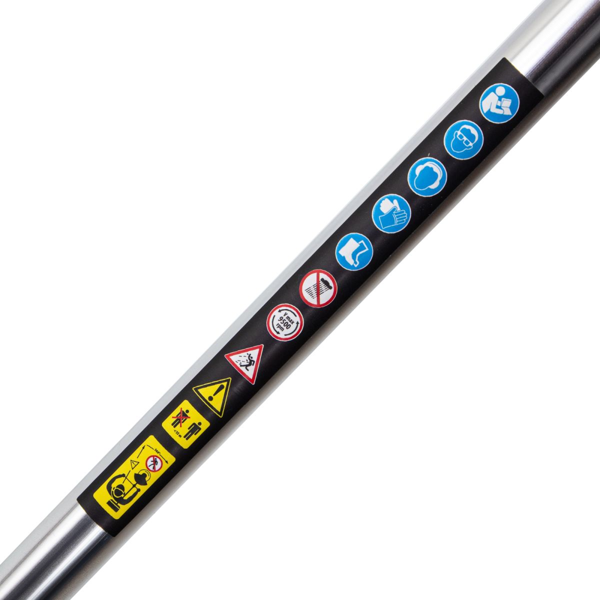 - Защита от летящей травы и веток — на штанге надежно закреплен прочный пластиковый кожух.