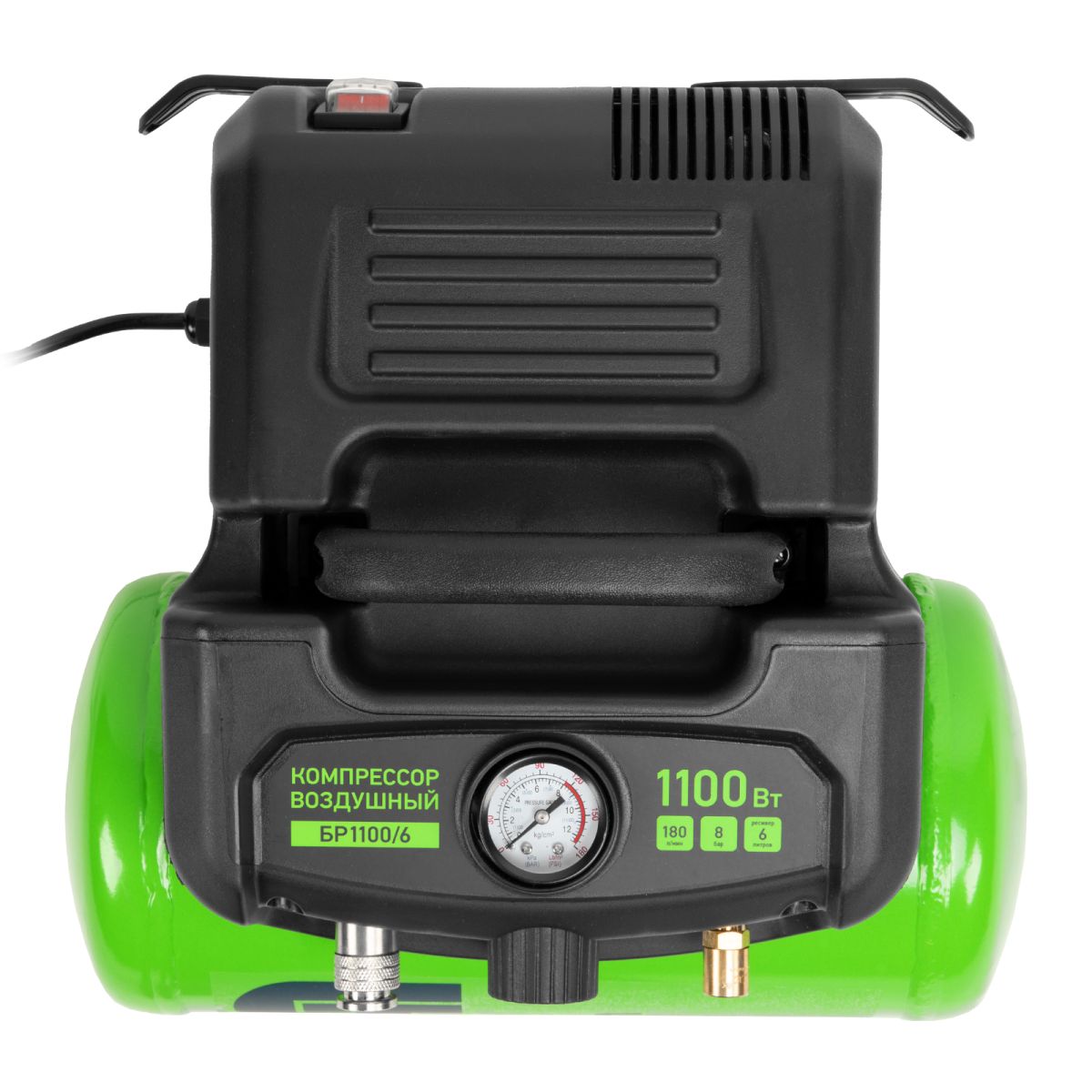 Воздушный безмасляный компрессор Сибртех BL 1100/6 58059 мощностью 1100 Вт, с ресивером емкостью 6 литров, служит для подачи сжатого воздуха под давлением до 8 бар со скоростью 180 л/мин. К нему можно подключить краскораспылитель, продувочный пистолет, заклепочник, пистолет для накачки шин и другой пневмоинструмент. Отсутствие масла делает компрессор оптимальным для выполнения покрасочных работ и продувки электронных компонентов. Устройство предназначено для бытового использования.,Одна из основных особенностей данной модели — компактность и удобство в перевозке. Компрессор отличается небольшим весом и дополнен эргономичной транспортировочной ручкой.