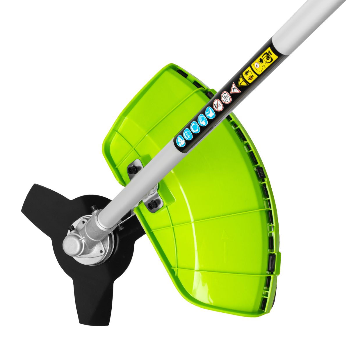 - Полуавтоматическая подача лески — достаточно слегка ударить кнопкой катушки о землю, не останавливая двигатель.