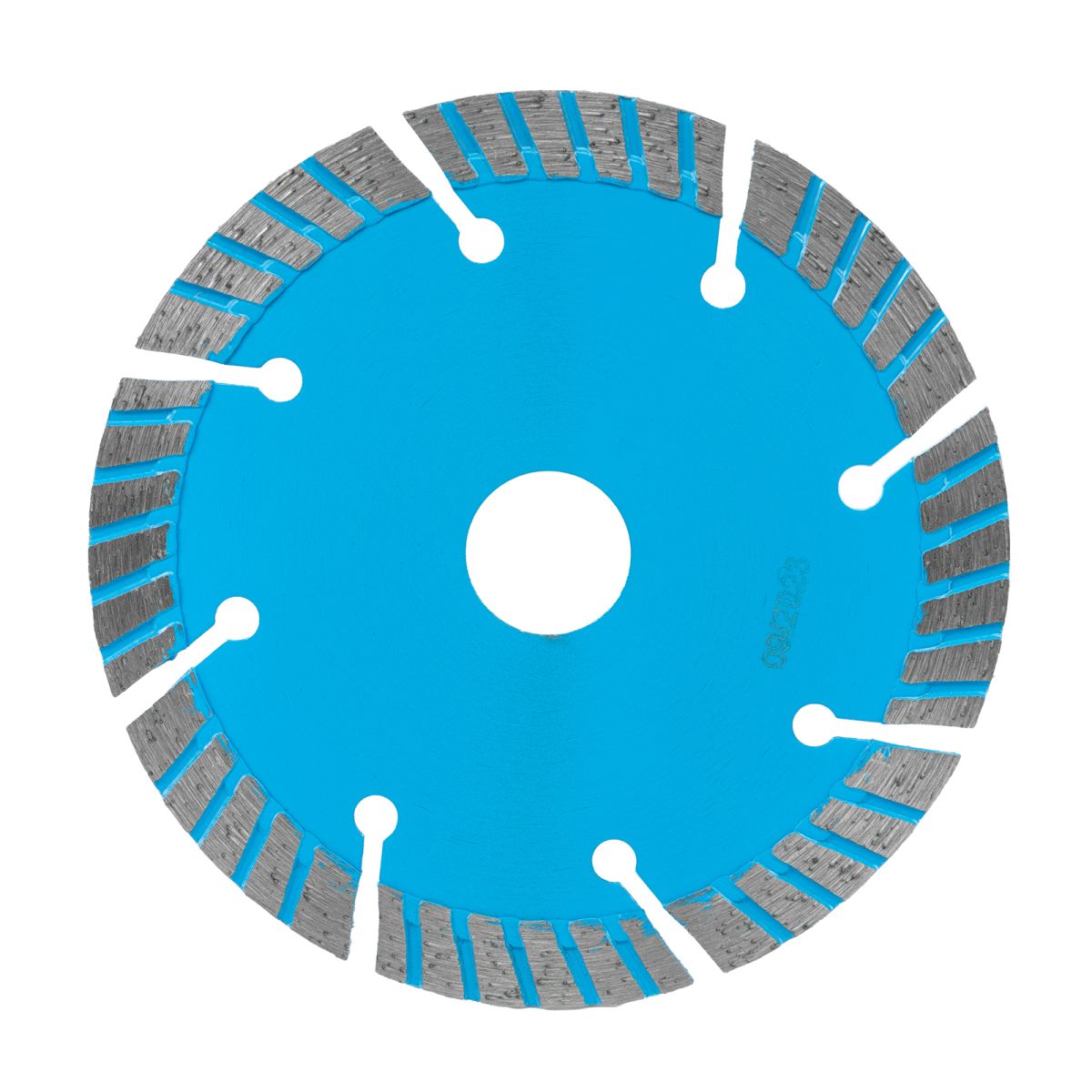 - Прорези заужены и расположены под углом — при соприкосновении с арматурой исключается потеря алмазного слоя и поломка диска.