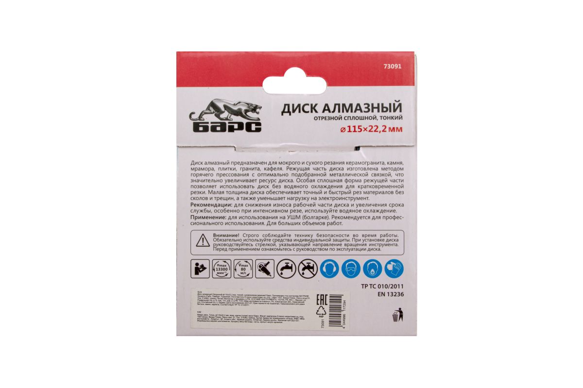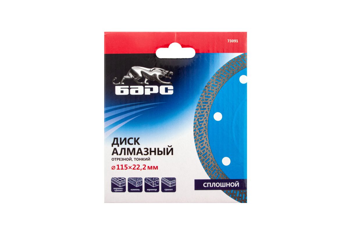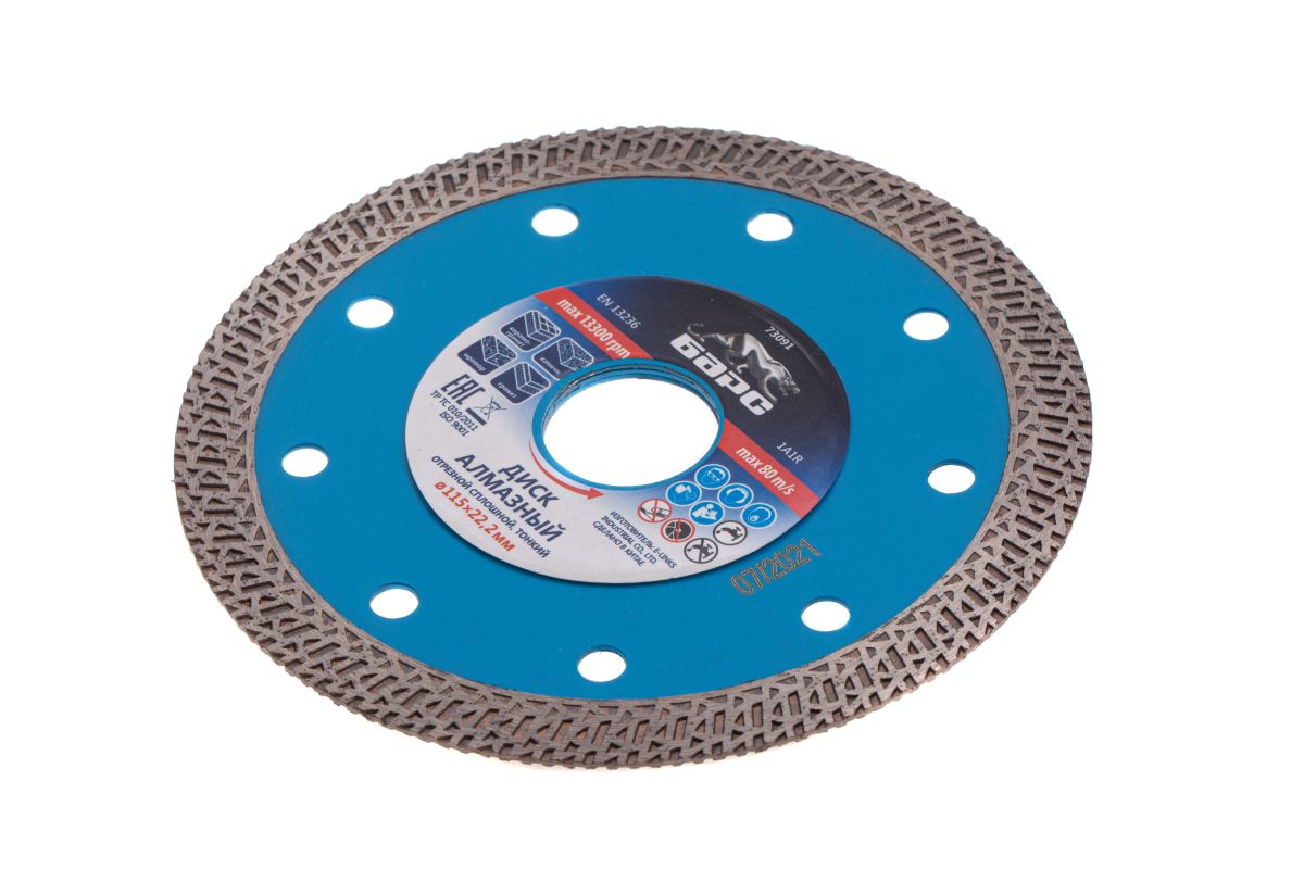Тонкий сплошной алмазный диск Барс ф115х22,2 мм 73091 с особой формой рабочей части применяется как для сухого, так и мокрого резания гранита и керамогранита, плитки, кафеля, мрамора, искусственного и натурального камня с помощью УШМ или плиткореза. Уменьшенная толщина диска позволяет снизить нагрузку на рабочий инструмент при резке керамогранита и других твердых материалов. Диск предназначен для профессиональной эксплуатации. Использование водяного охлаждения увеличивает ресурс диска и снижает вероятность получения сколов.