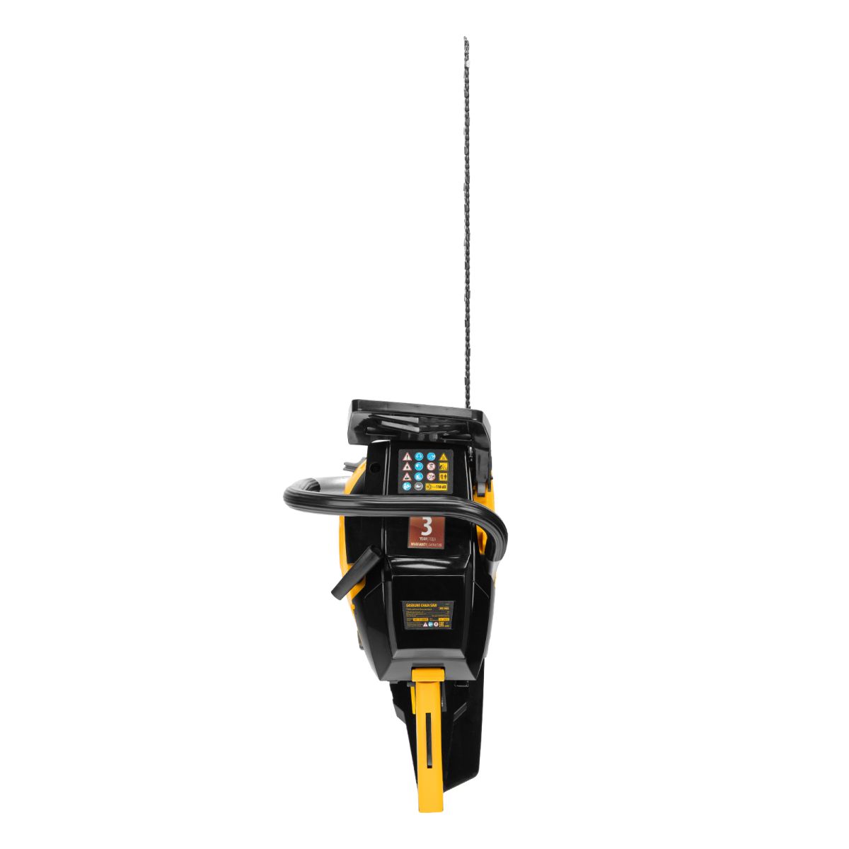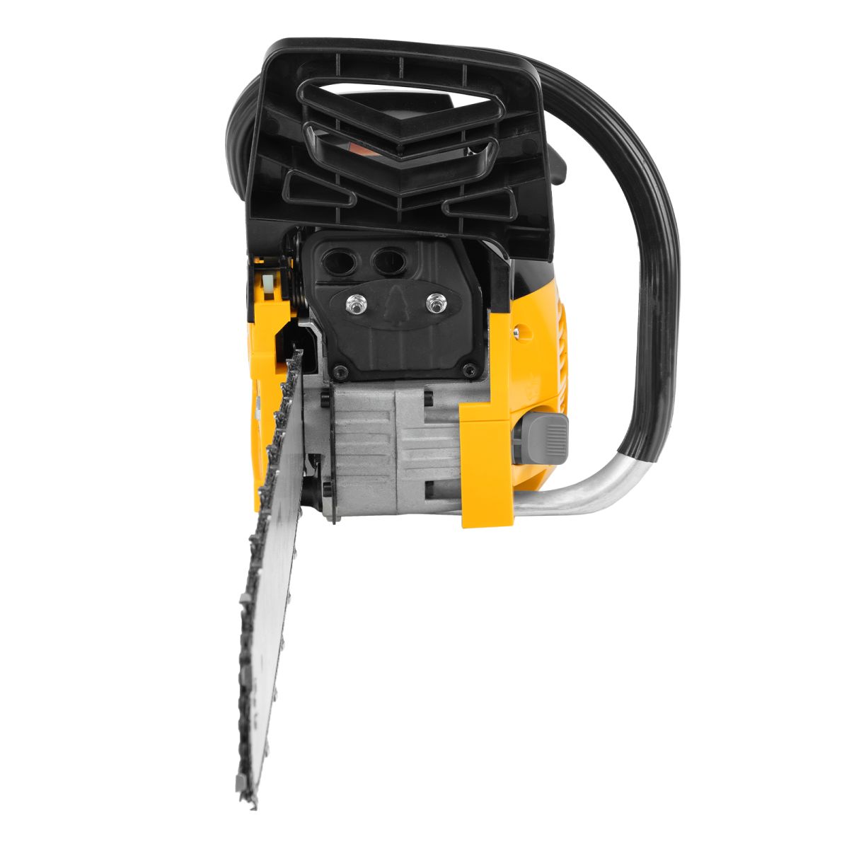 - Безопасность пользователя — усиленный щиток и автоматический тормоз цепи уменьшают риск получения травм при отскоке пилы, также предусмотрена защита от случайного пуска.