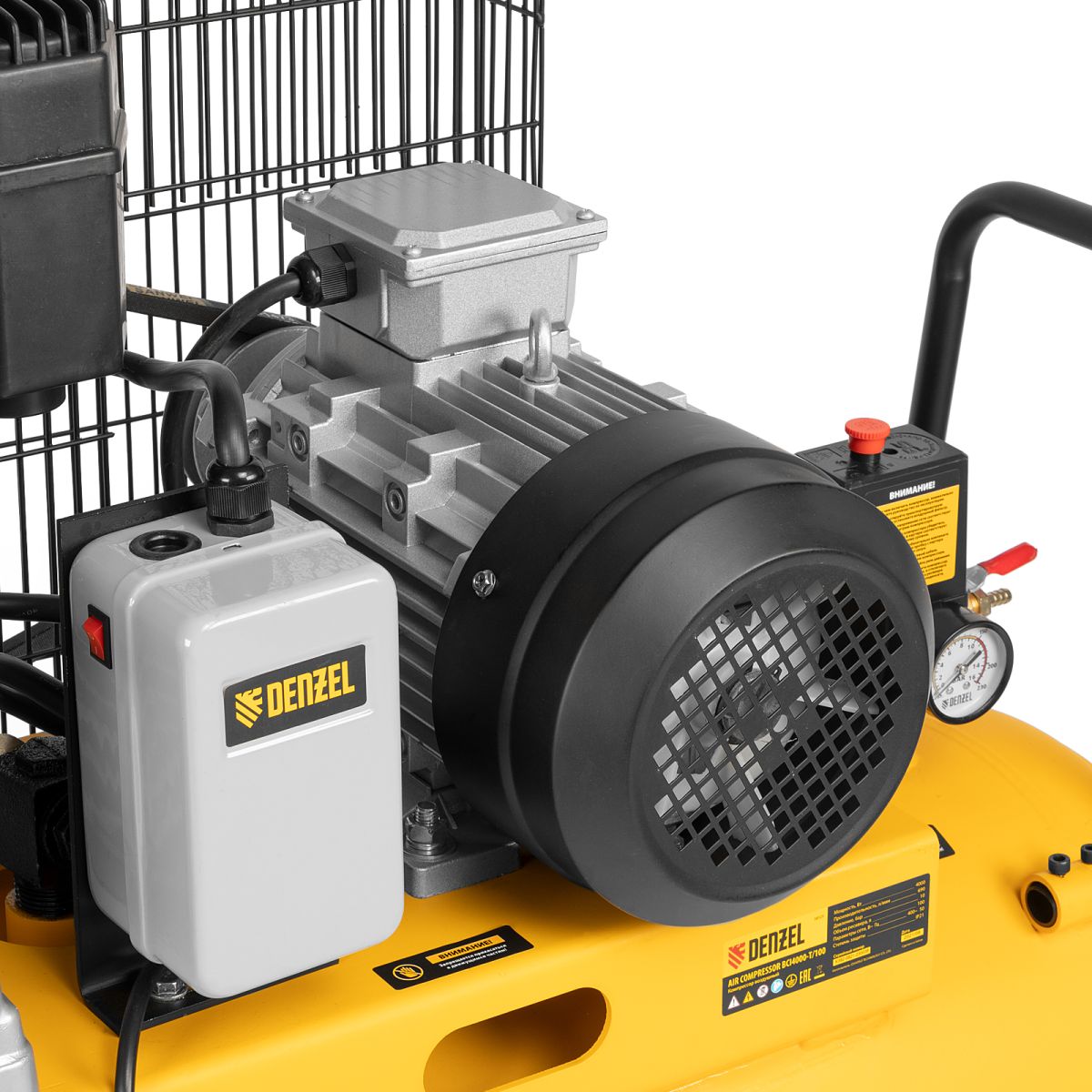 Воздушный компрессор Denzel BCI4000-T/100 58123 мощностью 4,0 кВт и производительностью 690 л/мин, с ресивером объемом 100 л, с ременным приводом и двумя цилиндрами, предназначен для регулярных и долговременных работ с пневмоинструментом — пневмогайковертом, пневмозубилом, пневмомолотком, пневмодрелью и другим оборудованием. Отличается высокой производительностью, что позволяет использовать его на строительной площадке, небольшом производстве, станции ТО.