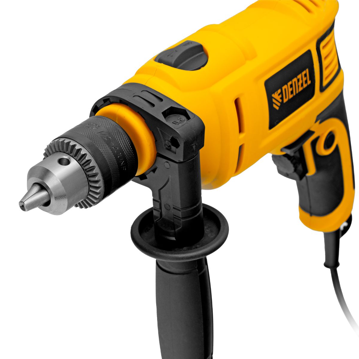 Ударная дрель Denzel ID-750 26307 мощностью 750 Вт поддерживает скорость вращения оснастки 0-3000 об/мин и частоту ударов 48000 уд/мин. Используется для ручного или ударного сверления металла, древесины, легкого бетона, кирпича, плитки или пластика. Сверлит отверстия диаметром до 25 мм в древесине, до 13 мм в бетоне и до 13 мм в металле. Эффективное сверление твердых материалов обеспечивает массивный промщит ударного механизма. Дрель работает со сверлами с диаметром хвостовика 1,5-13 мм, что позволяет эффективно решать различные задачи.