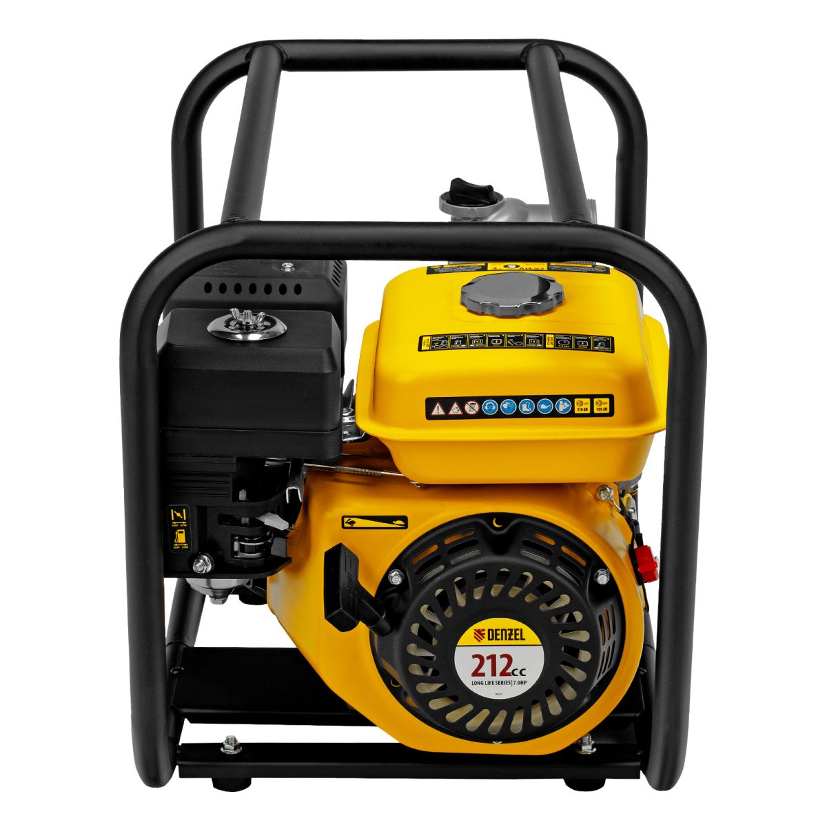 Бензиновая мотопомпа для чистой воды Denzel PX-50 99201 производительностью 600 л/мин, с двигателем мощностью 7 л. с. и штуцерами диаметром 2 дюйма, обеспечивает напор до 30 м и глубину всасывания до 8 м. Применяется для откачивания воды из бассейнов, водоемов, затопленных подвалов и складских помещений. Подходит для подачи воды на участок или в систему полива, может использоваться для проведения коммунальных, промышленных и строительных работ. Объем бака составляет 3 л, а расход топлива — 1,8 л/ч, поэтому мотопомпа способна проработать более чем 1,5 ч на полной мощности без дозаправки.