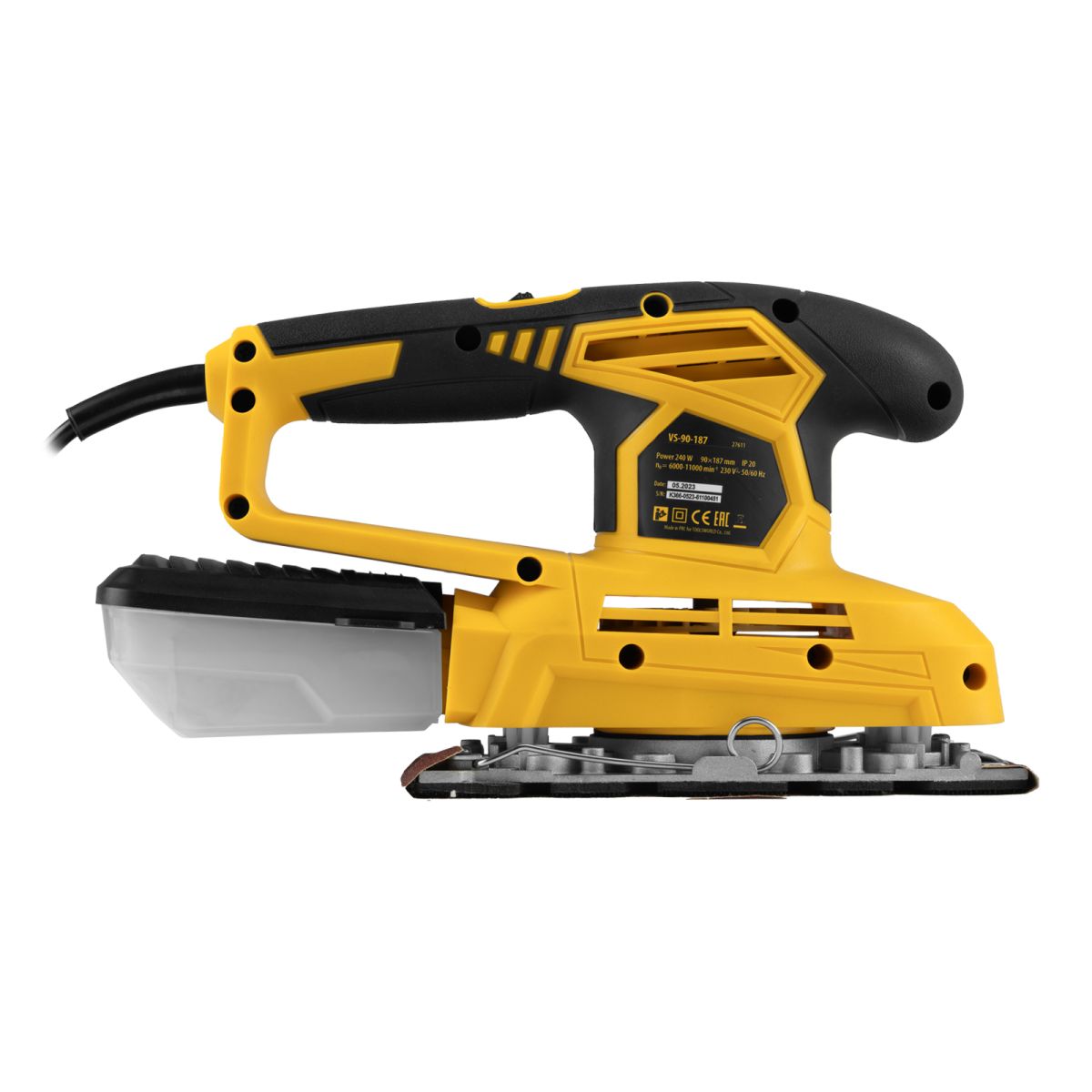 Вибрационная плоскошлифовальная машина Denzel VS-90-187 мощностью 240 Вт, с частотой колебаний подошвы 6000-11000 об/мин, подходит для сухого шлифования, зачистки и полировки поверхностей. Регулировка частоты колебаний подошвы 6000-11000 об/мин позволяет выбрать оптимальный режим работы. Размер рабочей поверхности составляет 90 х 187 мм, ход платформы — 1,6 мм, благодаря чему машина эффективно справляется с обработкой больших поверхностей.