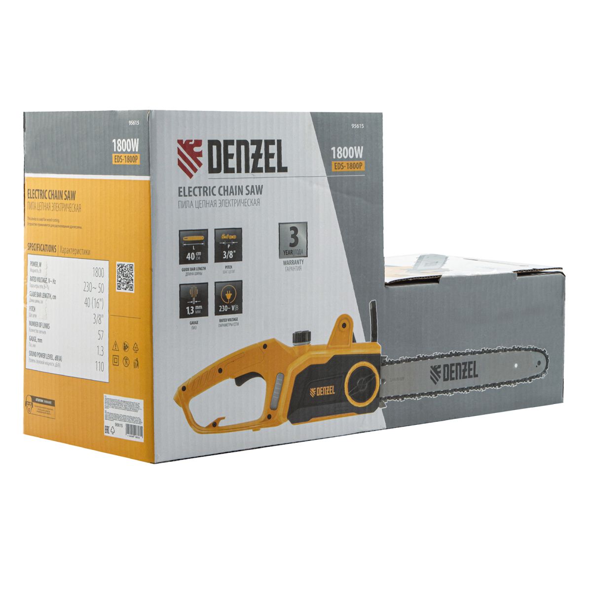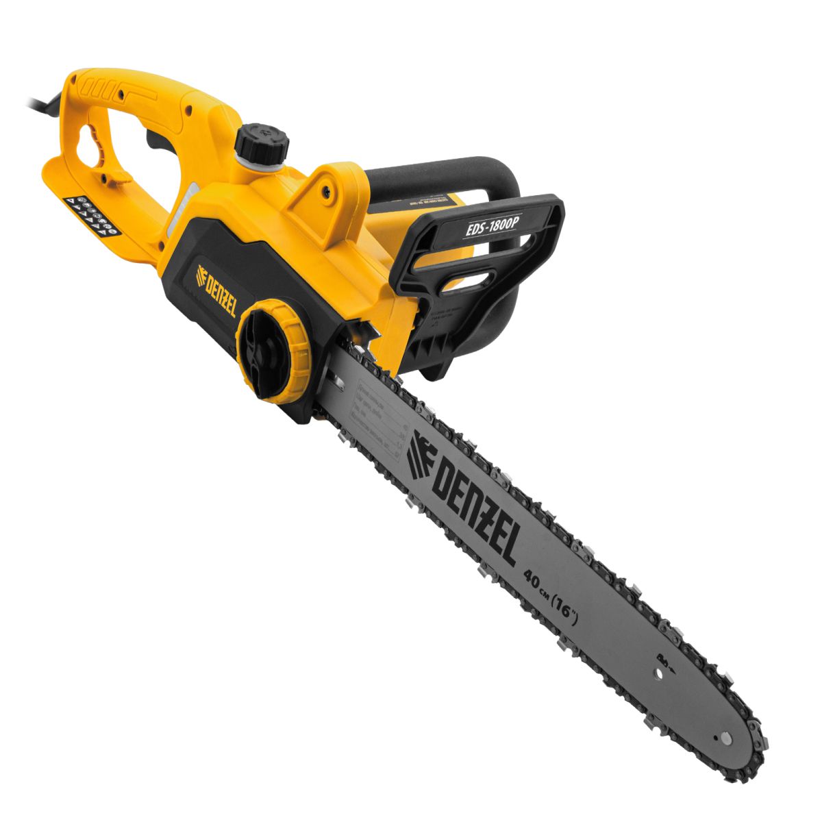 Электрическая цепная пила Denzel EDS-1800P 95615 с поперечным расположением двигателя мощностью 1,8 кВт, совместима с шиной длиной 40 см (шаг 3/8'', паз 1,3 мм) и цепью с 57 звеньями. Предназначена для распила различных пород древесины. Успешно справляется с валкой деревьев, подравниванием ветвей, заготовкой дров, спиливанием веток и т.д. Для работы пилы не требуется приготовление топливной смеси. Благодаря отсутствию вредных выхлопов и неприятного запаха инструмент можно использовать в помещении.