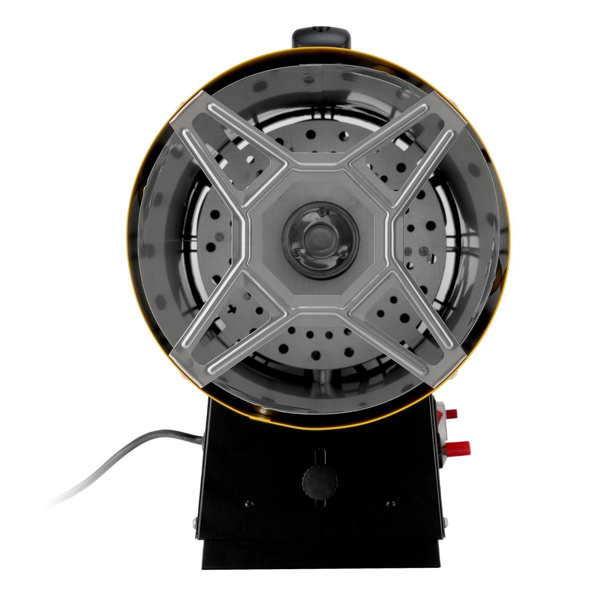 - Безопасность — выключатель питания закрыт влагозащитным кожухом, задняя решетка предотвращает попадание посторонних предметов и поломку оборудования.