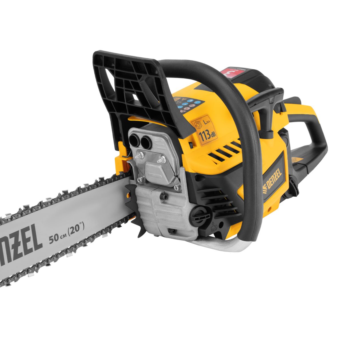 Пила цепная бензиновая Denzel DS-5820 95238 мощностью 3,6 л.с. оснащена двигателем объемом 58 см3 и поставляется с высокопроизводительной пильной гарнитурой: шиной длиной 50 см, цепью с 76 звеньями шагом 0,325" и пазом 1,5 мм. Используется для заготовки дров, распиловки древесины, при проведении ремонтных, строительных и садовых работ. Мощный и экономичный двухтактный двигатель позволяет эффективно и быстро решать поставленные задачи.