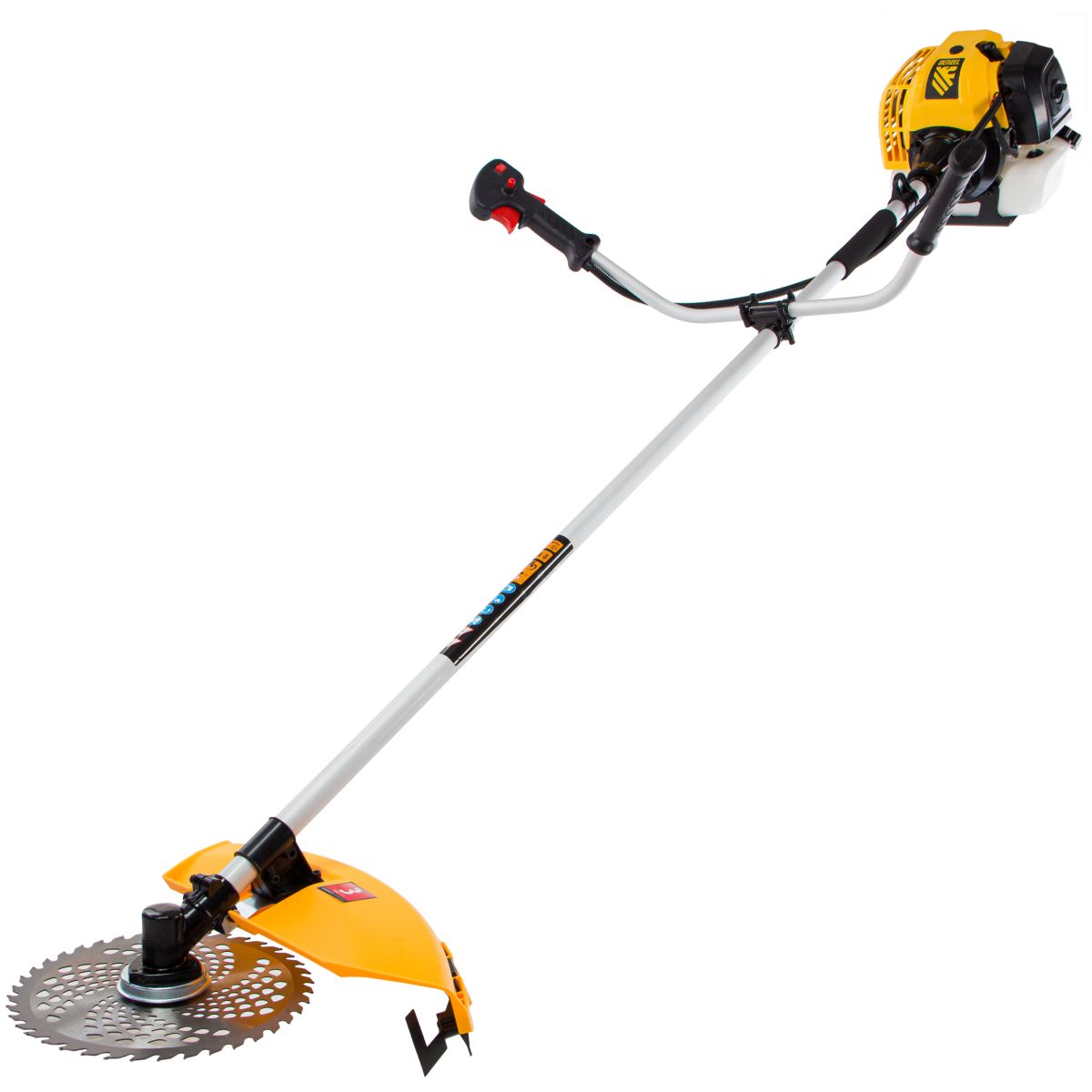 Бензиновый триммер Denzel DT-43 96224 оснащен экономичным, надежным и простым в эксплуатации двигателем мощностью 2,5 л.с. и объемом 43 см³, имеет неразъемную штангу и поставляется комплектом из 2 частей. Оптимален для подравнивания газона и скашивания травы с жесткими древовидными стеблями (полыни, крапивы, лебеды, борщевика), а также срезания кустарника и молодых побегов деревьев с диаметром стволов до 10 мм. Эффективно скашивает траву в труднодоступных местах: вдоль кромок дорожек, стен строений и вокруг деревьев. В комплекте катушка с леской и пильный диск, ширина скашивания составляет 420 мм и 255 мм соответственно.